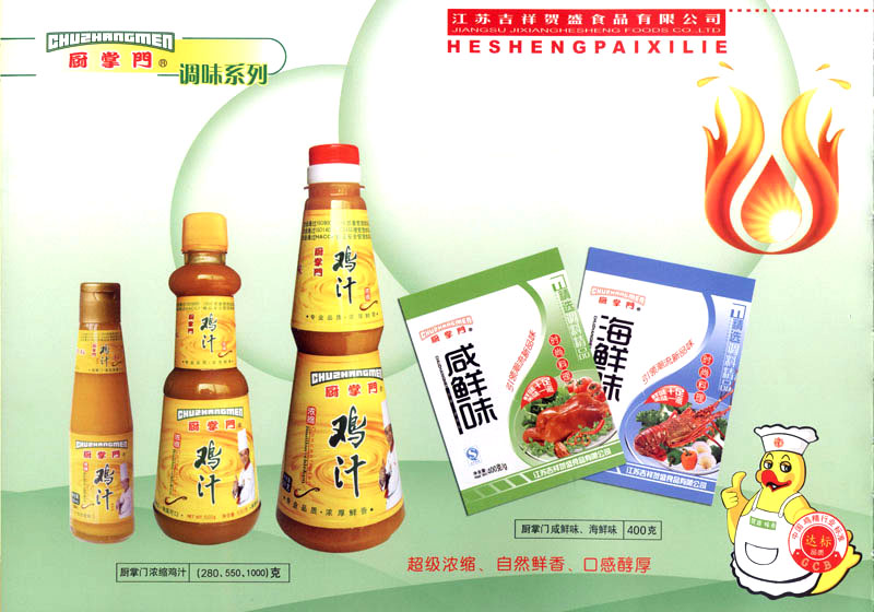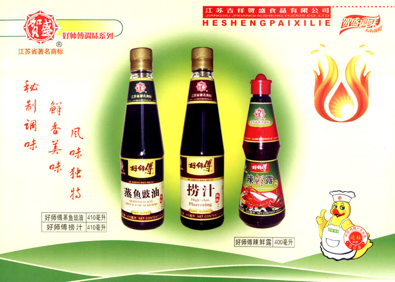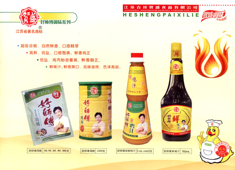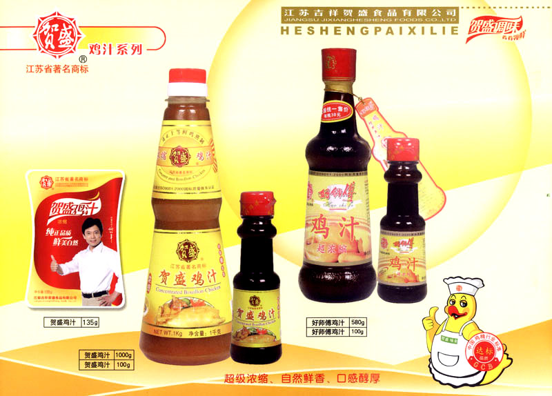 江蘇吉祥賀盛食品有限公司是一家中國專業(yè)餐料知名制造商,公司座落在經(jīng)濟(jì)高度發(fā)達(dá)“長三角”的常州市,緊靠312國道,滬寧高速與沿江高速交匯處,距常州火車站及長江水運(yùn)碼頭20千米,交通十分便利。公司占地面積23500平方米,花園式工廠、廠房面積18500平方米,現(xiàn)在員工330余名,其中擁有中、高級職稱管理和技術(shù)人員58名,生產(chǎn)場地均按食品和藥品GMP要求設(shè)計(jì)、全封閉車間、中央空調(diào)系統(tǒng)、閉路電視監(jiān)控系統(tǒng)。目前已建成成三條雞精,雞粉生產(chǎn)線。一條雞汁生產(chǎn)線。一條鮮味汁生產(chǎn)線。一條醬汁精膏類生產(chǎn)線,規(guī)劃年生產(chǎn)能力達(dá)30000噸。 “賀盛”品牌取自《詩·大雅·下武》中“受天之祜、 四方來賀”;《易經(jīng)》中“富有謂之大業(yè),日新之謂盛德”,賀盛企業(yè)師法源遠(yuǎn)流長中華飲食文化,融匯中西健康美食調(diào)味。相繼研發(fā)生產(chǎn)出高品質(zhì)的“賀盛牌”味精、雞精、雞粉、雞汁、湯王、鮑魚醬王、鮮味汁調(diào)味素和各種風(fēng)味熱反應(yīng)精膏等系列產(chǎn)品。二十年來“賀盛”產(chǎn)品質(zhì)量獲得廚藝界專業(yè)人士和消費(fèi)者的一致好評和高度認(rèn)可。 賀盛企業(yè)和產(chǎn)品相繼榮獲1995年“首界中國國際食品博覽會金獎”,2001年企業(yè)通過ISO-9001國際質(zhì)量體系認(rèn)證,2003年江蘇省“計(jì)量保證確認(rèn)單位”,2004年獲得自營出口權(quán),2005年賀盛雞精榮獲“江蘇名牌產(chǎn)品”,2006年賀盛商標(biāo)被評為“江蘇省著名商標(biāo)”,2007年通過HACCP認(rèn)證,全部產(chǎn)品均通過QS食品安全認(rèn)證,并積極努力爭創(chuàng)中國名牌,中國馳名商標(biāo)。 公司銷售網(wǎng)點(diǎn)建設(shè)發(fā)展迅速,相繼組建上海、南京、河南、海南、新疆全資分公司;辦事處、經(jīng)銷商覆蓋全國,并出口日本、香港及東南亞地區(qū)。二十年來,在公司總裁周國林先生帶領(lǐng)下,全體同仁秉承“厚德載物、自強(qiáng)不息”宗旨,發(fā)揚(yáng)“以人為本、科技創(chuàng)新、自我加壓、爭創(chuàng)一流”的企求精神;致力于傳承中華飲食文化,融化西方美食精粹,不斷的研發(fā)、創(chuàng)新,奉獻(xiàn)更多更好的調(diào)味料,讓生活更有滋味。公司總裁周國林先生攜全體員工熱誠歡迎各位新老朋友蒞臨指導(dǎo),洽談合作!