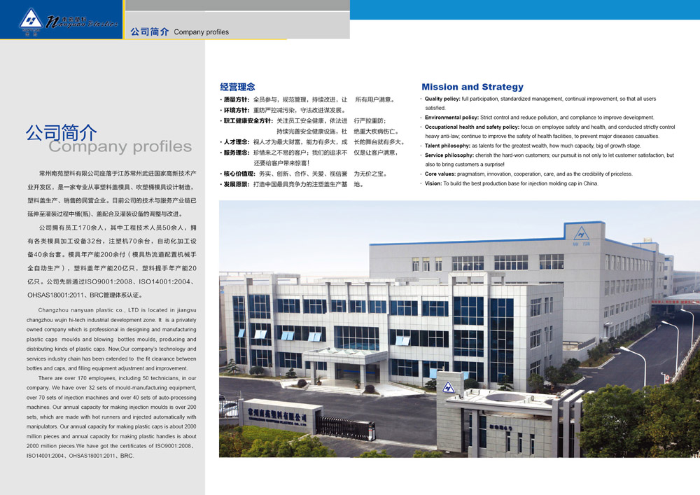 常州南苑塑料有限公司是一家專業(yè)從事塑料蓋模具、吹塑桶模具設(shè)計(jì)制造及塑料蓋產(chǎn)品生產(chǎn)和銷售的民營(yíng)企業(yè)。公司創(chuàng)建于1991年,總投資8000萬(wàn)元,擁有工程技術(shù)人員50余人,品質(zhì)管理人員20余人;各類注塑設(shè)備70余臺(tái)套。模具加工設(shè)備40余臺(tái)套,模具年產(chǎn)能200余付,塑料蓋年產(chǎn)能20億只,塑料提手年產(chǎn)能20億只。產(chǎn)品涉及潤(rùn)滑油、食品和保健品行業(yè)。主要客戶有:中石化、中石油、道達(dá)爾、埃爾夫、景田、怡寶、農(nóng)夫山泉等知名品牌的生產(chǎn)商!