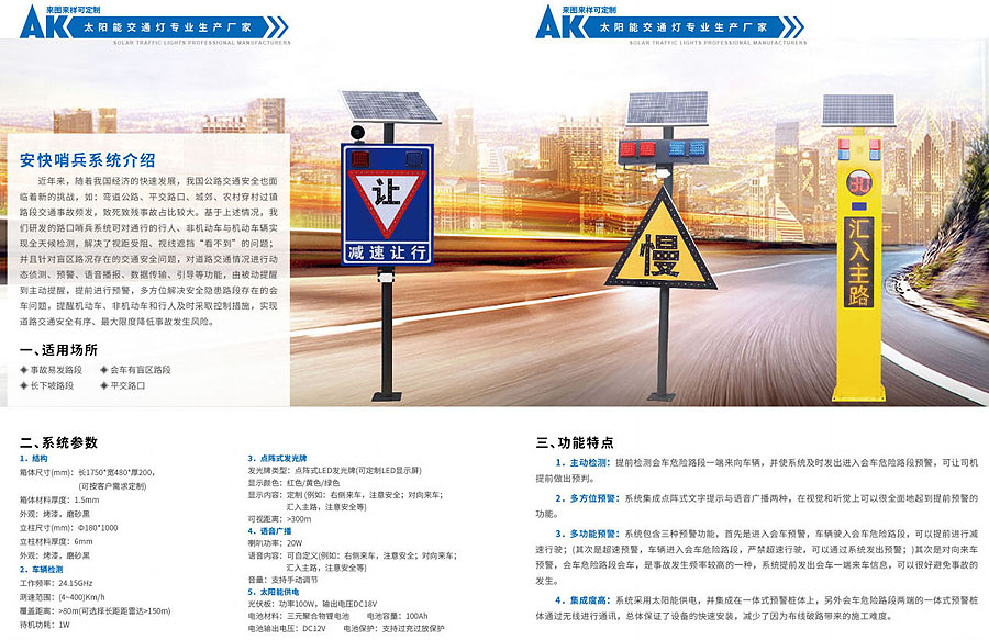 常州安快交通設(shè)施有限公司成立于2018年,位于江蘇省常州市鄒區(qū)鎮(zhèn)。是一家專業(yè)生產(chǎn)銷售交通信號(hào)電子產(chǎn)品廠家。主要產(chǎn)品有:太陽(yáng)能爆閃燈、回轉(zhuǎn)燈、雷達(dá)測(cè)試儀、黃慢燈警示燈、假警車(chē)、保通機(jī)器人、移動(dòng)紅綠燈、道路智能化預(yù)警系統(tǒng)的廠家。本公司真誠(chéng)的希望與客戶在臺(tái)作中加深了解、促進(jìn)友誼并期待與其建立長(zhǎng)遠(yuǎn)良好平等互利的臺(tái)作伙伴關(guān)系。我們竭誠(chéng)歡迎各界朋友來(lái)公司蒞臨指導(dǎo)、洽談業(yè)務(wù)井提出寶貴意見(jiàn)。
