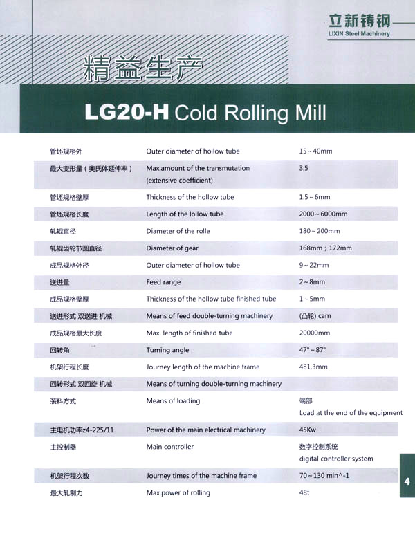 公司依靠科學(xué)進(jìn)步,結(jié)合國(guó)外先進(jìn)技術(shù)和國(guó)內(nèi)需求,自行設(shè)計(jì)制造LGl5一H、LG20一H、LG30一H、LG40一H、LG50一H、LG60一H、LGl20一H型系列長(zhǎng)行程環(huán)孔冷軋管機(jī)。對(duì)不銹鋼、碳鋼和有色金屬大減徑、大減壁軋制。亦可生產(chǎn)耐熱鑄鋼件、普通鑄鋼件、大型離心澆鑄件、大型軋輥堆焊等,同時(shí)可以為客戶加工生產(chǎn)大中型硬齒面齒輪及各類機(jī)械零部件備件。