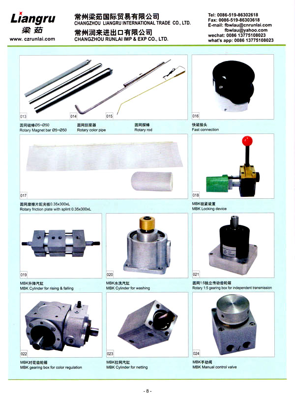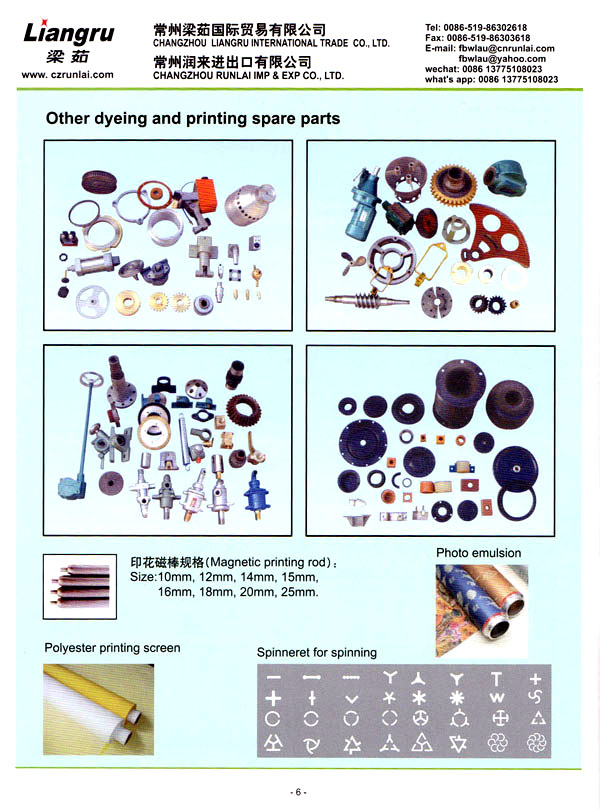 常州梁茹國際貿易有限公司是國內外雙用鋏,T型刮漿片,感光膠, 640軸承,剝邊器,阿托斯滑塊,印花用漿泵,針板座, 印花用圓網(wǎng),印花圓筒網(wǎng),華磁棒,針板,毛刷輪,定型機鏈條, 切布刀片的主要供應商 。我們公司位于常州市,臨近上海,交通十分便利。 我們注重產(chǎn)品質量,價格優(yōu)惠,這是我們成功的原因所在,我司跟配套廠家緊密合作,不斷推出新產(chǎn)品,年銷售額逐年增加。我們的產(chǎn)品涉及化工、機械、紡織印染機械配件。我們熱忱歡迎國內外客戶與我司洽談業(yè)務,相信在我們的熱情服務之下能合作成功!
