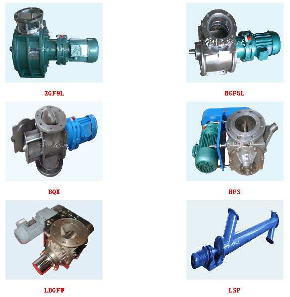 公司生產(chǎn)的關(guān)風(fēng)機、旋轉(zhuǎn)閥、星型裝卸料裝置、螺旋輸送機,共有TGF、ZGF、ZGFW、ZGFWE、ZGFWF等十多種機型,五十多種規(guī)格,百余種參數(shù),制造材質(zhì)有鑄鐵、碳鋼、不銹鋼等,可滿足不同介質(zhì)、不同工況的要求。產(chǎn)品廣泛應(yīng)用于糧油、食品、飼料、化工、制藥、干燥、除塵等行業(yè)。