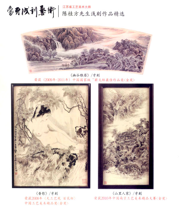 陳桂方,江蘇常州武進人,中國著名雕刻藝術家,江蘇省工藝美術大師、研究員級、高級工藝美術師,江蘇省非物質文化遺產《象牙淺刻》代表性傳承人。畢業(yè)于中國書畫函授大學,深造于清華大學、南大美術系,現(xiàn)任中國工藝美術協(xié)會會員,江蘇省工藝美術學會理事,常州市工藝美術家協(xié)會副秘書長,常州市工藝美術行業(yè)協(xié)會常務理事,武進工藝美術協(xié)會副主席。陳桂方大師淺刻作品的藝術特點:山水氣韻生動,氣勢磅礴,場面壯觀,刀法細膩:人物仕女生動可人,栩栩如生,充分表達體現(xiàn)了中國象牙工藝獨具的內在文化底蘊和現(xiàn)代社會的審美觀念及獨特的淺刻藝術表現(xiàn)技藝。對每件藝術作品創(chuàng)作都精益求精,強調藝術創(chuàng)作的思想性、意境及內涵。注重章法構思,掌握牙刻藝術的特性表現(xiàn),作品具有鮮明生動的時代氣息,獨具所創(chuàng)工筆與寫意相結合的牙刻藝術表現(xiàn)手法和表現(xiàn)形式,出眾、飄逸、多變的刀法技藝,粗獷處見細微、方寸間見大觀的創(chuàng)作理念深受專家權威的肯定和業(yè)內人士的一致好評。陳桂方大師至企頑事象牙淺刻藝術創(chuàng)作近四十余載,完善了自己的創(chuàng)作體系,成就了自己獨特的藝術風格。作品數(shù)年來連續(xù)二十多次榮獲國家最高藝術精品大獎《金獎》,象牙淺刻作品《李逵探母》已被國家工藝美術館收藏,并頒發(fā)了國家收藏證書,在全國數(shù)十年間尚屬首次。當前,陳桂方牙刻藝術作品已深受廣大海內外業(yè)內人士、收藏家們的鐘愛、青睞、熱藏,并被譽為當代最杰出最具潛質的實力派藝術大師。