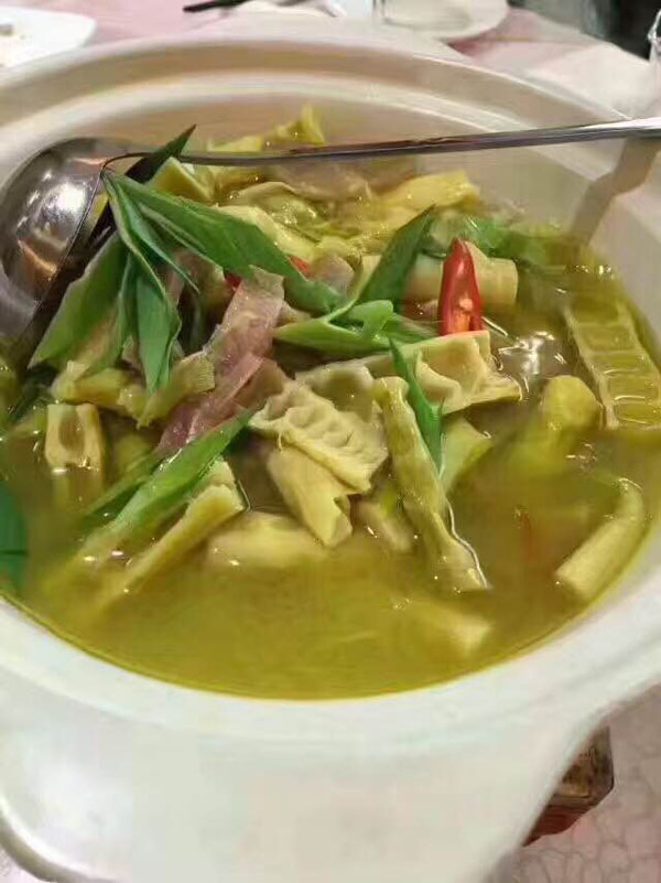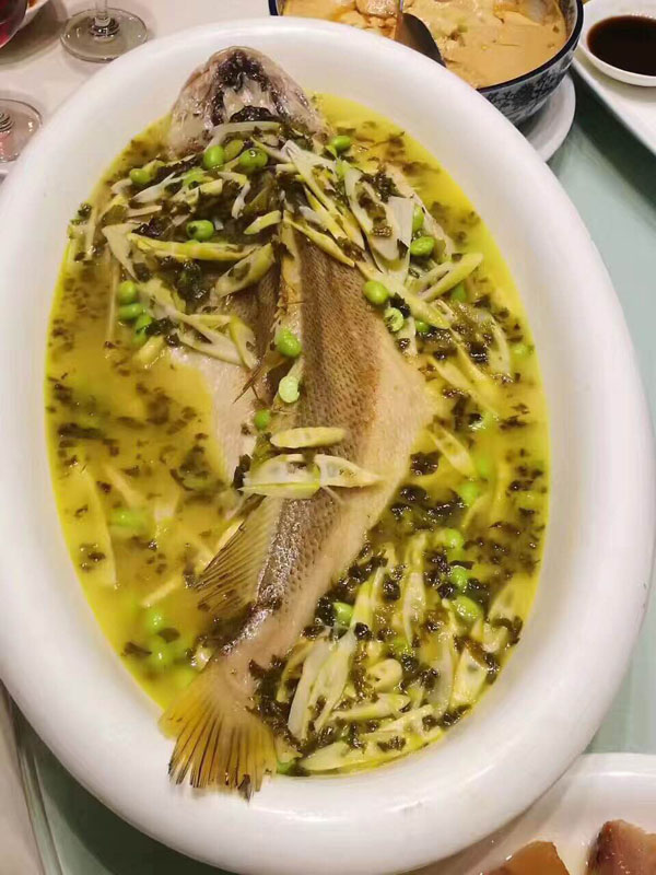 橫林有個地兒叫楊歧村,有句老話叫“上不靠橫林,下不靠洛社”,說的就是那里。 楊歧村過去幾十米就是無錫地界,今天小編推薦的土菜館「三妹農家小吃」就在那里。 當小編一路七拐八拐,中午11點半到達那里時,門面雖然很簡陋,但店門口已然停了好多輛車。剛進入店門,就發(fā)現(xiàn)這家店人氣好旺,十幾桌基本都坐滿了。(所以說,人不可貌相,餐館也是如此) "三妹,三妹!"店里客人叫喚聲不絕于耳,原來老板娘叫楊三妹啊。你們忙,我們先隨便看看。 過大廳到后堂就是冷菜間,里面有白切草雞、鹵豬干、拌馬蘭等十幾種土菜,尤其那草雞濃郁的香味,讓小編肚子叫得咕咕響。 往前是活貨區(qū),各種鮮魚活蝦一格一格區(qū)分養(yǎng)著,再里面是開放式廚房,每個客人都可以看到,選用的放心食材和調料。  吃貨老板娘,楊三妹,三妹,從小到大一直有個嗜好,就是愛美味,不光喜歡吃,還喜歡鉆研做。2010年,「三妹小吃」開張,因為獨具特色,在楊歧這個小村一炮而紅。要說楊三妹最拿手的菜是什么,當然是酒糟扣肉。 糟本來就是一種做米酒留下來后,用來吊燒酒的。但是我們常州人很聰明,把糟和肉放在一起,做成一道美味菜,叫酒糟扣肉。 楊三妹的酒糟扣肉之所以有名,得益于母親的悉心傳授。記憶里小辰光,她母親做的扣肉總比別人家的香!冈恪梗勍昃坪罅粝碌脑,會與炒熟的新糯米,拌和在一起,陳一年!溉狻,選擇本地養(yǎng)殖的良種豬,沒有臊味。 長大后,她把記憶里的美味延續(xù)了下來。精益求精的她,對扣肉的制作過程要求很嚴格。別人家制作都是把肉直接切大塊,排碗,熬槽,蒸爛。三妹說,這樣烹制,肉汁的鮮美會流失很多,口感減分不少。她的做法是精選新鮮豬五花,整大塊清蒸,保留肉汁的鮮美,之后再切塊紅燒,排碗,熬糟,澆蓋,再蒸。 三妹酒糟扣肉,出鍋后,色澤紅潤,味道鮮美。既有酒的香味,又有肉的鮮美,而且經(jīng)過蒸煮后,油脂都出來了,爽口不油膩。