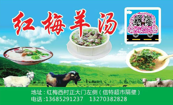 天寧區(qū)紅梅奧彩小吃店(紅梅羊湯店)成立十四年,特色是羊湯, 羊肉是中國人民食用的主要肉類之一.羊肉比其他肉類的肉質(zhì)要細(xì)嫩,而且膽固醇含星低。相對其他肉類而言,羊肉蛋白質(zhì)含量較多,脂肪含量較少。維生素B1、B2、B6以及鐵、鋅、硒的含量頗為豐富。此外,羊肉肉質(zhì)細(xì)嫩容易消化吸收.多吃羊肉有助于提高身體免疫力。 羊肉熱量比牛肉要高.中醫(yī)認(rèn)為,羊肉具有補(bǔ)精血,益虛勞.溫中健脾,補(bǔ)腎壯陽,養(yǎng)薛等功能,尤其適合老年人、體虛的人群食用。 羊肉的大部分脂肪都可看得見,很容易去除。羊腿部肉、肋骨和腰部肉比肩胛肉瘦。每100克烤羊腿中.含蛋白質(zhì)28克、脂肪7克、膽固醇100毫克.能提供的熱量是757.7千焦。 羊羔肉富含蛋白質(zhì)、鋅和維生素B族,其中煙酸、維生素B2和維生素B12的含量壟基圭富.羊羔肉中鎂、鉀和磷的含量也較高,并易于吸收。