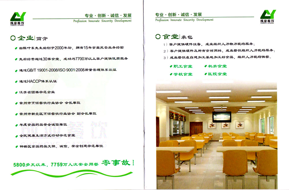 常州市成業(yè)餐飲管理有限公司位于常州市鐘樓區(qū)星港58號(hào),是一家專業(yè)從事中小學(xué)師生營養(yǎng)餐制售及配送一體化的企業(yè),自創(chuàng)立以來,始終堅(jiān)持“專業(yè)•創(chuàng)新•誠信•發(fā)展”的經(jīng)營理念,牢固樹立“消費(fèi)者利益至上”的行業(yè)價(jià)值觀,以“社會(huì)利益和經(jīng)濟(jì)利益共同實(shí)現(xiàn)”為發(fā)展目標(biāo),深入推進(jìn)各項(xiàng)創(chuàng)建工作,積極響應(yīng),工商協(xié)同、培育品牌、信息共享、完善制度、增強(qiáng)能力,從而更好地服務(wù)于在校就餐師生。 公司董事長陳葉東先生經(jīng)過多年的自主經(jīng)營歷程,積累經(jīng)驗(yàn),勇于創(chuàng)新,積極進(jìn)取,于2009年3月籌建創(chuàng)立常州市成業(yè)餐飲管理有限公司,注冊資金518萬元整,發(fā)展至今,已經(jīng)營管理30多家中小學(xué)、企業(yè)食堂,每天為45000多人次提供優(yōu)質(zhì)放心午餐,擁有良好的經(jīng)營信譽(yù)和口碑。 為了更好的適應(yīng)常州學(xué)生營養(yǎng)餐供給模式,于2015年2月投建2000平方米中心廚房,同年8月正式投入使用,以先進(jìn)的恒溫配送模式滿足校內(nèi)無食堂的學(xué)校供餐需求。2018年5月,鑒于公司發(fā)展需求,重新投建350平方米團(tuán)餐加工及配送中心,8月正式投入生產(chǎn),力求成為常州市一流的學(xué)生營養(yǎng)餐配送企業(yè)。 基于常州公司的穩(wěn)步發(fā)展,成業(yè)并沒有滿足現(xiàn)狀,停下腳步。2017年7月以980萬注冊創(chuàng)建鹽城成業(yè)餐飲管理有限公司,為鹽城阜寧教育體系各單位提供食堂管理及師生團(tuán)膳配送服務(wù)。至2019年3月,日供餐人次已達(dá)21000多人次。 2018年7月,成業(yè)餐飲在鹽城地區(qū)相繼啟動(dòng)濱海和響水兩縣的集體用餐配送及食品原料大宗采購項(xiàng)目,當(dāng)?shù)叵嚓P(guān)政府部門對(duì)公司的發(fā)展規(guī)劃及實(shí)施進(jìn)度給予了高度評(píng)價(jià)和支持。