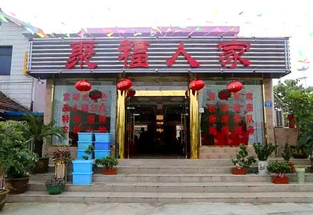 口福 一手的新鮮食材 聚福人家的老板張玉良是土生土長的太滆人,從小就跟隨父母的漁船在太湖上搖曳長大。憑著對(duì)太湖水產(chǎn)的熟識(shí)與一番鄉(xiāng)戀,他畢業(yè)后留在了這里,進(jìn)入了常州水產(chǎn)公司太滆銀魚分公司,繼續(xù)與這里的魚魚蝦蝦打交道。多年的矜矜業(yè)業(yè),他漸漸對(duì)太滆的漁業(yè)熟門熟路,于是便離開水產(chǎn)公司,自己開始做起了水產(chǎn)生意,10艘大漁船一年四季為其供應(yīng)最新鮮的魚蝦,有一手的新鮮貨源做后盾,他萌生開飯店的想法。 2008年,聚福人家的前身聚福樓飯店開張了。8年來,張玉良始終堅(jiān)持親自為飯店挑選新鮮的食材,顧客吃得開心、吃得健康,他就放心了。 聚福人家的菜品不僅食材新鮮,而且豐富多樣,味道一流。讓家鄉(xiāng)的味道走出去,讓外面的味道走進(jìn)來