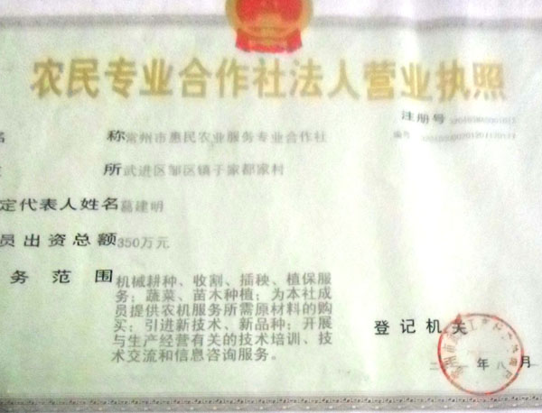 常州市惠民農(nóng)業(yè)服務(wù)專業(yè)合作社主要從事機(jī)械耕種、收割、插秧、植保服務(wù);蔬菜、苗木種植;為本社成員提供農(nóng)機(jī)服務(wù)所需原材料的購買;引進(jìn)新技術(shù)、新品種;開展與生產(chǎn)經(jīng)營有關(guān)的技術(shù)培訓(xùn)、技術(shù)交流和信息咨詢服務(wù)。