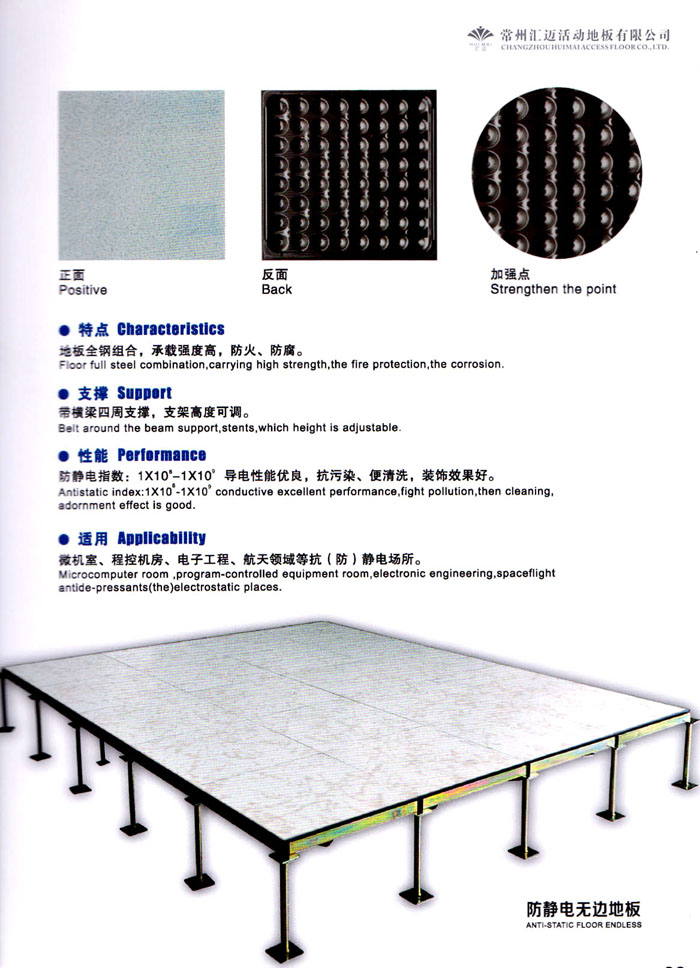 常州匯邁活動(dòng)地板有限公司地處鄉(xiāng)鎮(zhèn)工業(yè)發(fā)達(dá)的江蘇省常州市。北靠滬寧高速公路、東臨上海、交通便利。多年來,公司以其硬朗的產(chǎn)品質(zhì)量.良好的商業(yè)信譽(yù),嚴(yán)格的企業(yè)管理,迅速發(fā)展成為國(guó)內(nèi)生產(chǎn)全鋼活動(dòng)地板的知名企業(yè)。 本公司致力于高新技術(shù)產(chǎn)品開發(fā)、生產(chǎn)、研究的綜合性企業(yè):主要生產(chǎn)和經(jīng)營(yíng)防靜電網(wǎng)絡(luò)地板系列.主要包括:陶瓷防靜電活動(dòng)地板、無(wú)邊地板、硫酸鈣防靜電地板、OA網(wǎng)絡(luò)活動(dòng)地板等。公司按照GB6650—86與IS09001 :2000系列質(zhì)量標(biāo)準(zhǔn)化管理和標(biāo)準(zhǔn)化生產(chǎn),以市場(chǎng)為導(dǎo)向.不斷對(duì)現(xiàn)有產(chǎn)品進(jìn)行優(yōu)化、更新,對(duì)生產(chǎn)線進(jìn)行技術(shù)改造,力求減低成本,提高效辜。努力在市場(chǎng)競(jìng)爭(zhēng)中占據(jù)優(yōu)勢(shì)。本公司為中國(guó)信息產(chǎn)業(yè)部認(rèn)證企業(yè).質(zhì)量由國(guó)家信息產(chǎn)業(yè)部防靜電產(chǎn)品質(zhì)量監(jiān)督檢測(cè)中心認(rèn)可。 公司大力發(fā)展國(guó)內(nèi)殛海外銷售業(yè)務(wù),公司采用各種有效的營(yíng)銷手段,向客戶展示了公司及產(chǎn)品的良好形象,多次中標(biāo)國(guó)內(nèi)重點(diǎn)裝飾工程 同時(shí)。公司積極融入全球經(jīng)濟(jì)發(fā)展,積極拓展海外業(yè)務(wù)。 匯邁地板將一如既往,開發(fā)和制造一流的產(chǎn)品,吸引和培養(yǎng)一流的人才,擁有和完善一流的服務(wù),建立和發(fā)展一流的形象,迎接新時(shí)代!