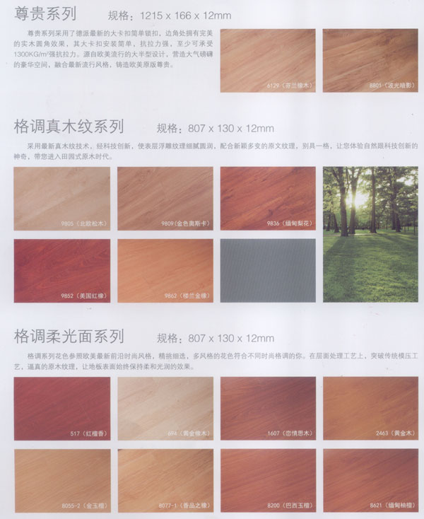 公司生產(chǎn)的地板所選用的材料均為進(jìn)口或國(guó)內(nèi)上等材料。嚴(yán)格的入廠檢驗(yàn),不使任何不合格的原材料流入生產(chǎn)環(huán)節(jié),優(yōu)異的生產(chǎn)加工工藝使原材料和精良設(shè)備的優(yōu)勢(shì)發(fā)揮至及致;嚴(yán)格的質(zhì)量管理體系更使每一流轉(zhuǎn)環(huán)節(jié)的產(chǎn)品品質(zhì)一流。每塊出廠的地板都符合比國(guó)標(biāo)更嚴(yán)格品質(zhì)標(biāo)準(zhǔn)。