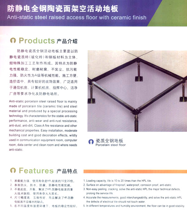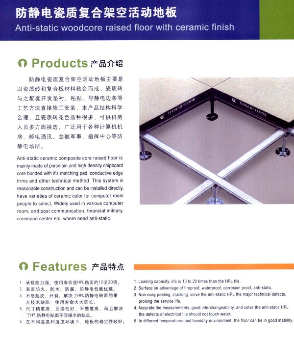 常州天馳活動地板有限公司始創(chuàng)于2010年,原身是常州市武進(jìn)區(qū)橫林天馳機(jī)房地板廠,地處橫林工業(yè)園區(qū),交通便捷。 公司主要生產(chǎn)和銷售各種機(jī)房地板,自創(chuàng)立以來,以品質(zhì)第一,信譽(yù)第一,服務(wù)第一的理念堅持做全國最優(yōu)質(zhì)量。 防靜電高架活動地板是計算機(jī)行業(yè)發(fā)展起來的新型鋪地材料,隔離了潮氣,靜電灰塵。最重要的是解決了綜合布線問題,無需預(yù)埋管線,可隨時拆卸,搬移,保證了資訊設(shè)備完整的優(yōu)點,適應(yīng)了智能化樓宇中信息自動化技術(shù)對所處環(huán)境的特定要求,避免了廣大客戶的雙重投資,使現(xiàn)代化辦公程度更加高效,辦公場所更加舒適。 公司專業(yè)生產(chǎn)“天馳”系列活動地板,符合國家安全要求,種類完備多樣,其中防靜電瓷質(zhì)高架通路地板除具有普通瓷質(zhì)的裝飾和實用性外,其耐磨,防水,防火功能優(yōu)于其他同類產(chǎn)品,深受客戶歡迎。 公司大力發(fā)展國內(nèi)外銷售業(yè)務(wù),多次中標(biāo)國內(nèi)重點裝飾工程,例:湖南電視臺,寧波縣變電站,鞍山市120急救指揮中心等。 公司將一如既往開發(fā)和制造一流的產(chǎn)品,愿與廣大有識之士合作發(fā)展,共創(chuàng)美好未來!