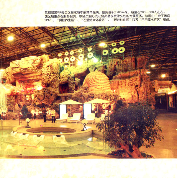 淹城花都溫泉水城孕育天地之精華,悅身、悅?cè)、悅心、悅神。置身其中泉水潺潺,霧氣繚繞、花瓣飄香,恍若仙境!稗渌略谑郑ㄏ銤M衣”,花都溫泉的浪漫與溫潤(rùn)在這里完美展現(xiàn)。 花都溫泉水城包括洗浴區(qū)、戲水世界、露天溫泉、自助餐廳、生態(tài)房、別墅區(qū)、紅文化房、VIP區(qū)等多種功能區(qū)域,是集溫泉養(yǎng)生、休閑住宿、演藝會(huì)務(wù)為—體的休閑度假勝地,給賓客帶來江南小鎮(zhèn)的浪漫水城之旅。 古木新枝畔賓客對(duì)酒當(dāng)歌,溪泉石椅旁把茶品啜。 淹城-三勤生態(tài)酒店,這里是一處綠色生態(tài)的美食家園。此地鬼斧神工.奇水異石,和風(fēng)細(xì)雨林中穿過,引百鳥朝來暮歌;這里集生態(tài)餐飲、演藝、中小型會(huì)務(wù)為一體,將現(xiàn)代裝飾風(fēng)格和古雅拙樸的自然裝修完美整合;這里聚集大江南北名廚,推出精致綠色美昧佳肴。來到這里,賓客可享田園至美之景,品舌尖至鮮之味,實(shí)乃人生一大樂事。