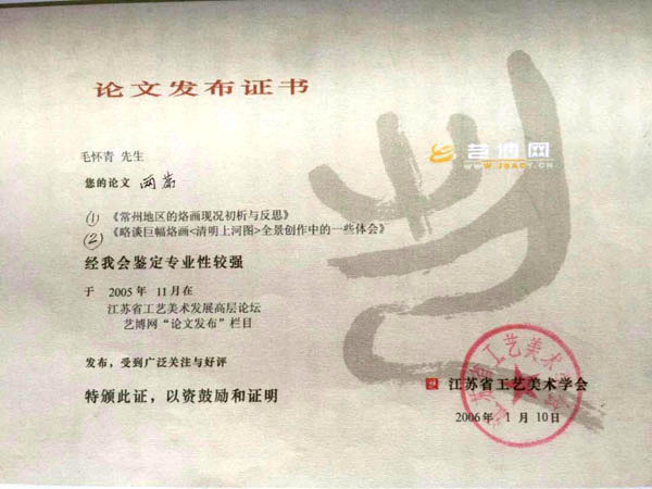 近年來,創(chuàng)作的烙畫作品分別獲得過全國、省市級的金、銀、銅獎(jiǎng)多次。中央電視臺(tái)曾兩次播放過本人的烙畫作品,江蘇電視臺(tái)、常州電視臺(tái)也曾多次播放過本人的作品與烙畫藝術(shù)生涯,揚(yáng)子晚報(bào)、常州日報(bào)、常州晚報(bào)也曾多次報(bào)導(dǎo)過本人的烙畫作品,出版物有三種版本都能查閱到介紹本的烙畫從藝生涯與藝術(shù)業(yè)績。