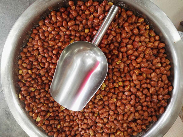 湖塘花東街上的“石頭炒貨店”是20多年的老字號了。上個世紀(jì)90年代,二十郎當(dāng)歲的“石頭”一一石愛軍從徐州來到武進,就在這條街上擺了個炒貨攤!皫灼椒矫椎男〉財,邊上架個大鐵鍋,炒出的瓜子、花生、蠶豆,鋪在竹篾上篩過、冷卻后就可以賣了!笔瘣圮娀貞,街坊鄰里冒著冬日的嚴(yán)寒,擠在地攤前嘗著剛出鍋的瓜子的場景,還歷歷在目。20多年過去了,鄰居們都成了最熟悉的親人,從年輕姑娘到抱著孫子的老人,大家還是最愛吃石頭炒的瓜子。而炒貨店的店面也擴大了,并且在湖塘另開了多家分店。 生意最好的還是花東街上的老店。不大的店面,被一袋袋瓜子、花生、蠶豆、核桃堆得滿滿的,空氣里也滿滿都是堅果的香氣。超大瓜子唇齒留香,去皮瓜子鮮香入昧,南瓜子皮薄肉厚,還有開心果、手剝松子、小油果、核桃、碧根果、小黃豆,以及炒米糕、蛋卷、麻松條、紫薯干、地瓜干、山芋片、鍋巴、芝麻糖、山楂、麻花、葡萄干….這么多美昧都是老板親手制作。愛吃點什么,就用一 長柄勺鏟點兒什么,最質(zhì)樸簡單的包裝袋里,裝著的是屬于這條老街居民記憶里的味道,穿過幾十年的時光,仍然鮮活生動地銘刻在每一個人的里。 “少東家”石榮沖就是在這個老店、這條老街長大的。他說目前自己炒瓜子的技藝還沒到火候,還在跟著父親學(xué)習(xí)的階段!碧暨x原料、炒制工序,每一步都有學(xué)問在里頭!蹦玫陜(nèi)的銷售冠軍“內(nèi)蒙大瓜子”來說,這種來自內(nèi)蒙、經(jīng)過充足日照的葵花子每顆長度近2厘米,個頭特別大,也十分飽滿。拈一顆大瓜子,就連嗑起來的聲音也分外清脆。外皮很容易與內(nèi)仁剝離,碩大的瓜子仁口感十分香脆,與別家作料用得很足、吃起來特別鮮咸的瓜子不同,這種大瓜子更注重烘托原昧,淡淡的咸昧在舌尖掠過,剩余的都是屬于瓜子的天然香甜。