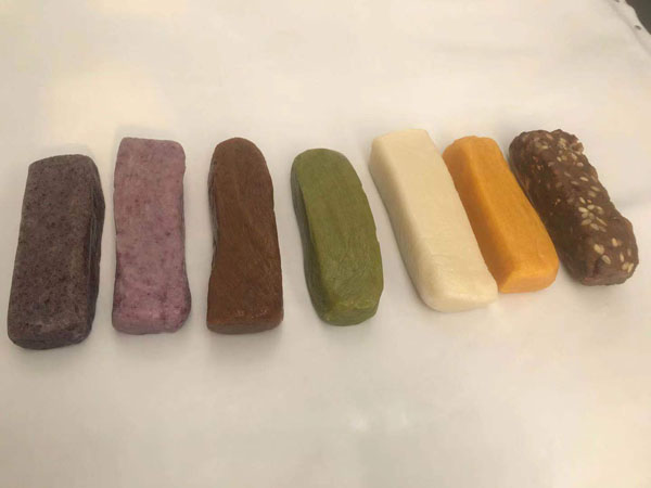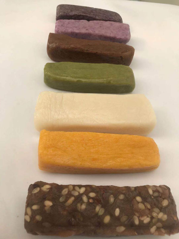 腳踏糕本名“年糕”,按常州周邊地區(qū)的風(fēng)俗習(xí)慣,在春季前夕,各家各戶都要蒸年糕,吃年糕。“糕”諧音“高”,過年吃年糕被賜予“年年高”,一年高一年,鋒吉祥之意,表達這人們對未來美好生活的憧憬和良好的祝愿。今天小編要帶大家的就是一家至今保持著傳統(tǒng)手工制作的鈺鋒糕點坊。 鈺鋒糕點坊位于常州鄭陸鎮(zhèn)三皇廟范家莊,一個比較偏僻的村莊,雖然這家作坊不大,但香糯絲滑,軟糯適中,韌勁十足的腳踏糕吸引了無數(shù)的食客。制作一條腳踏糕要從淘米,浸泡,碾粉,鋪粉,一層一層的鋪下去,需要無數(shù)道制作工序,這些都是店主孫煥公公老周,憑著幾十年的經(jīng)驗,加上店主孫煥從不馬虎的決心! 這“腳踏”也并非赤腳上陣,而是把蒸好的糕倒入早以準備好的框子里,用布包裹好,上面再用薄膜包好,再蓋上布,再換上專門腳踏的布鞋,踩的時候要勻稱,左右腳要配合好,不然糕會高高低低,不平整,最后再拿蠟燭線拆成一條小長條,再拿帶包裝好,如此又香又糯的腳踏糕就大功告成了。 店主孫煥為了讓更多的人認識和了解常州腳踏糕的傳統(tǒng)文化和美食,她在傳統(tǒng)工藝中增加了適合現(xiàn)代文化的多種口味,她在糕里加入南瓜,紫薯,老紅糖,大麥汁,血糯米,核桃,葡萄干,紅棗等食材,做出五顏六色,純天然的口味,深受食客們的喜愛,不管是送人還是自己吃都非常新穎。 (重陽糕)重陽糕的由來,九九重陽,九是陽數(shù),也是陽數(shù)中最大的數(shù),九月初九,兩九相重,為之重陽,古人有重陽登高的習(xí)俗。高于糕同意,寓意人活九十九,生活步步高,秋景勝春光,夕陽無限好。夕陽紅成了老人對自己美好的祝愿和希望,所以從某種意義上來講它“祝壽糕”“長壽糕”重陽糕在常州地區(qū)是家喻戶曉的,下面小編帶你去一家至今保持傳統(tǒng)手工制作的鈺鋒糕點坊看一下吧。鈺鋒糕點坊位于常州市天寧區(qū)鄭陸鎮(zhèn)三皇廟范家莊,偏僻的小村莊,雖然有點偏僻,但是每到重陽節(jié)到來,每天還是有很多食客來訂購和購買店主孫煥做的多種口味的重陽糕。要想做出松軟香糯的重陽糕,原材料和糯米和梗米的配比也很重要,調(diào)整好比例開始淘米,浸泡,釓粉,放入糖攪拌,篩粉,糕底部放上荷葉,中間的餡心都是孫煥自己熬制,口感,香糯松軟,店主孫煥為了吸引更多現(xiàn)代年輕人,她在粉里加入南瓜,紫薯,紅糖,血糯等,色彩搭配很出跳,吸引來了很多食客,孫煥2019年開始自愿捐贈重陽糕給敬老院,她說這樣的公益活動自己很喜歡,雖然金額不大,缺表達了她的一份心意,并稱這樣的公益活動她每年都會做。