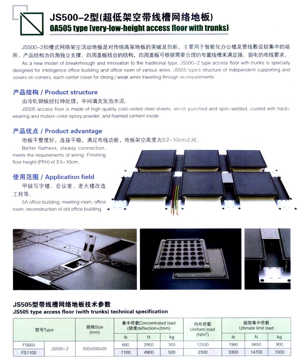 公司生產(chǎn)防靜電鋼質(zhì)、木質(zhì)機(jī)房地板和強(qiáng)化復(fù)合地板及各種電腦操作臺(tái)系列產(chǎn)品。該產(chǎn)品廣泛應(yīng)用于電子機(jī)房、通訊機(jī)房、各類實(shí)驗(yàn)室和管線鋪設(shè)集中的防靜電場(chǎng)所以及家庭、大型商場(chǎng)的裝飾。公司技術(shù)力量雄厚、管理科學(xué),已具有設(shè)計(jì)、開發(fā)、市場(chǎng)營(yíng)銷及售后服務(wù)的專業(yè)人才隊(duì)伍。