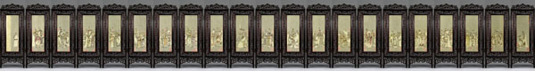 4 牙刻《三國演義圖》,作者懷著對牙刻藝術(shù)的鐘愛,對中華古老文化之敬仰,肩負(fù)時代之重托,賦予作者堅韌不撥的決心和毅力。牙刻《三國演義》創(chuàng)作靈感被點燃,博大、深遂、精致而具有鮮明文化特質(zhì)的牙刻作品自然天成,得以成就夢寐以求的作品。由微雕63萬余漢字《三國演義》全文作為灰色背景,105枚金石名章烘托出《三國演義》名著中各領(lǐng)風(fēng)騷、形象鮮明的126個主要人物。由21扇牙刻紫檀組合成3.28米長的巨型屏風(fēng),寓意著對美好21世紀(jì)的憧憬。小牙刻大題材、大系列、大氣魄、大氣象,最終產(chǎn)生巨大的震撼力。牙刻《三國演義》如此恢弘絕無僅有、前無古人。從表象看牙刻與微雕的融合、書法金石與人物的呼應(yīng)、灰色背景與墨彩的烘托,精雕紫檀與微雕牙刻的對照,而深層次看這些都是繪畫語言在牙刻藝術(shù)中的完美體現(xiàn),也突破了千余年來固守線刻傳統(tǒng)的窠臼,提升了當(dāng)今牙刻藝術(shù)的品位并注入新的活力,將牙刻從藝人勞動升華為藝術(shù)家從事的創(chuàng)作。這件作品是我歷時五年于2001年10月雕刻而成,一經(jīng)展出引起了工藝美術(shù)界高度關(guān)注,獲得了首屆中國華東工藝美術(shù)精品展金獎、第三屆國家級工藝美術(shù)大師精品展金獎、首屆中國工藝美術(shù)學(xué)會最高學(xué)術(shù)獎“華藝杯”金獎。