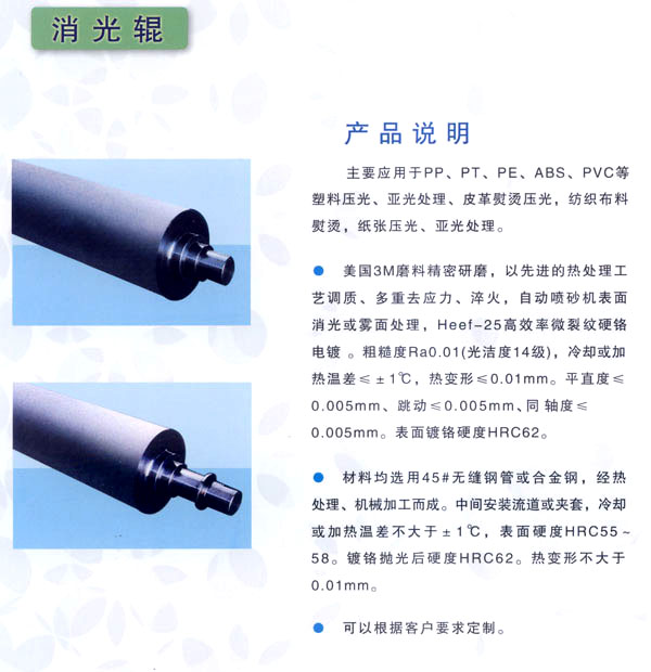 常州市武進區(qū)禮嘉鎮(zhèn)萬超機械有限公司專業(yè)生產(chǎn)、加工花輥、鏡面輥、無紡布設備,及各類機械配件。產(chǎn)品廣泛應用于金屬、塑料、皮革、紙張、玻璃、木材、無紡布、衛(wèi)生材料、包裝裝潢等行業(yè)。 公司經(jīng)營方針:服務鍥而不舍 品質力臻卓越。得到國內(nèi)眾多客戶的厚愛與好評。 歡迎各界朋友蒞臨常州萬超機械有限公司指導和業(yè)務洽談。 萬超為顧客免費打樣、并代客壓紋!