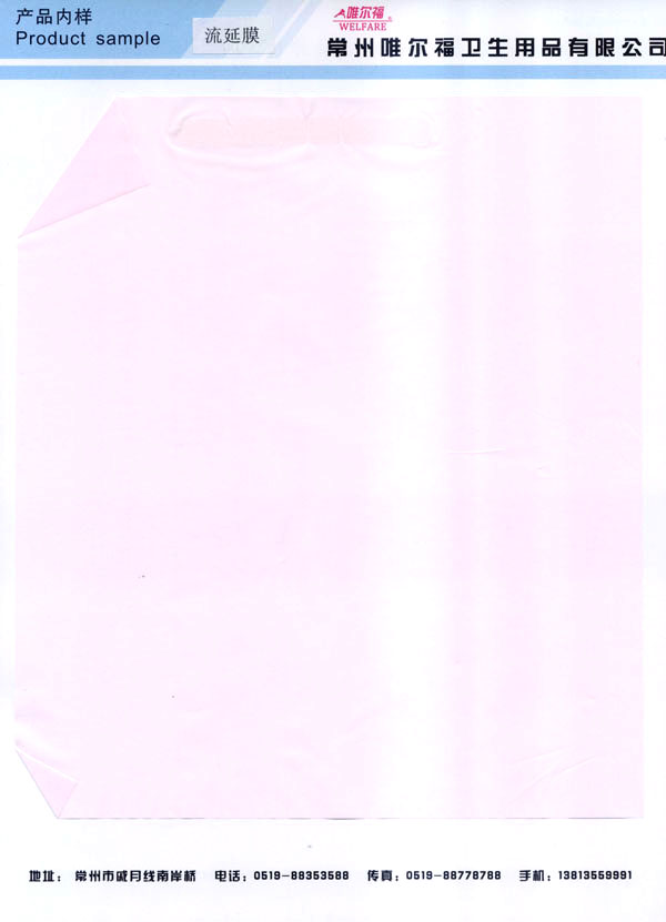 常州唯爾福衛(wèi)生用品有限公司是一家獨資企業(yè),地處滬寧高速、沿江高速,常州橫山出口交匯處,交通便利、環(huán)境清新。 常州唯爾福衛(wèi)生用品有限公司創(chuàng)建于1998年,公司占地2.5萬平方米,員工165人。 公司現(xiàn)有各類生產(chǎn)線20條。公司現(xiàn)已發(fā)展成為各項管理先進、技術力量雄厚,全年流延膜產(chǎn)量9000噸,華東地區(qū)最具規(guī);牧餮幽どa(chǎn)基地。 公司專業(yè)生產(chǎn)9—80克流延膜,15—80克透氣膜,及各類印刷膜。優(yōu)極柔版印刷,各種復合膜。廣泛適用于婦女衛(wèi)生用品、嬰兒紙尿褲、成人紙尿褲、成人床墊、寵物墊、醫(yī)用薄膜制品等領域。多年來公司致力于研究和開發(fā)適應市場需求的新產(chǎn)品來滿足廣大客戶的需求。