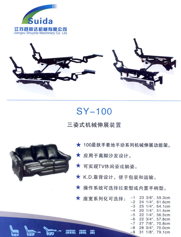 江蘇舒意達機械有限公司是一家集研發(fā)設計,生產(chǎn)制造及銷售的專業(yè)家具五金企業(yè)。公司成立于2006年,座落于風景秀麗的江南常州,交通運輸?shù)锰飒毢,為海?nèi)外客商的來往交流,洽談和供貨提供了諸多便利,公司占地面積28000平方米,生產(chǎn)廠房面積18000平方米,獨立的辦公樓,擁有良好的工作環(huán)境。 我們的經(jīng)營思理念:堅持以人為本,科技為先,用先進的設備,好的工藝流程制造一流的產(chǎn)品。 我們的口號:保證以優(yōu)秀的品質服務于客人,我們的目標:研發(fā)更多舒適的產(chǎn)品,帶來生活的享受。 公司誠邀海內(nèi)外客商前來指導洽談,攜手共進,共造雙贏。