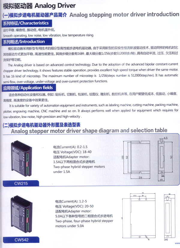 常州創(chuàng)偉電機電器有限公司成立于1995年,是一家專業(yè)從事步進電機及驅動控制生產(chǎn)、研發(fā)的企業(yè),F(xiàn)已擁有一批富有經(jīng)驗的生產(chǎn)和開發(fā)隊伍。企業(yè)在多年的發(fā)展過程中,為全國各地各行業(yè)提供了大量質優(yōu)價廉的步進電機及控制產(chǎn)品。應用領域涉及機器人、音樂噴泉、數(shù)控機床設備、工業(yè)電子自動化設備、醫(yī)療器械、廣告器材、舞臺燈光設備、印刷設備、紡織機械、計算機外部應用設備等等。 公司產(chǎn)品先后通過ISO9001質量管理體系認證,RoHS認證,CE認證。公司現(xiàn)擁有全自動繞線機、調壓式充磁機、萬能外圓磨床、數(shù)控機床等設備50余臺,固定資產(chǎn)3000萬元,員工總數(shù)200余人,其中技術人員25人。年生產(chǎn)各類電機100萬臺。依靠齊全的檢測設備、完善的檢測手段、嚴格的質量標準,我們一直致力于提高產(chǎn)品的質量和性能。對于每一個客戶我們都提供自始自終的技術服務和產(chǎn)品售后服務。 我公司的主要產(chǎn)品有20BH系列、28BH系列、35BH系列、39BH系列、42BH系列、42BHH系列、57BH圓形系列、57BHH方形系列、60BHH方形系列、86BH圓形系列、86BHH方形系列,以及110BHH系列的四相(二相)混合式步進電。CW60BL、CW63BL、CW70BL、CW92BL系列無刷電機也相繼上市。另外步進電機驅動器CW215、CW230、CW5045、CW8060、CW6060AC、CW1108以及全新數(shù)字式驅動器CWD230、CWD556、CWD860H、CW2M2208、CW3M2208和閉環(huán)電機驅動器CWDS556,CWDS660,CWDS860H,CWDS880L,CWDS1108,CWDS2206等系列也暢銷全球。另外本公司也可對外承接各種步進電機及相關工控系統(tǒng)的應用系統(tǒng)工程。 熱忱歡迎國內外客商前來洽談及合作。
