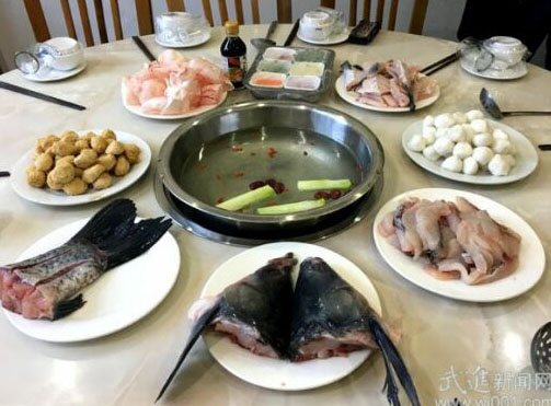 洛陽戴溪青魚火鍋店,眾所周知,火鍋屬于川菜,以麻、辣、鮮、香著稱,是四川的美食代表。如今,火鍋店遍地開花。作為本土自創(chuàng)品牌老字號(hào)火鍋店,洛陽戴溪青魚火鍋店20年來屹立不倒,自然有它獨(dú)到的地方。 青魚火鍋獨(dú)此一家,青魚火鍋,顧名思義,最主要的食材當(dāng)然就是青魚。走進(jìn)洛陽戴溪青魚火鍋店,就會(huì)被大堂內(nèi)的兩塊大匾所吸引,上面詳細(xì)介紹了戴溪青魚。“常州市名牌產(chǎn)品”、“武進(jìn)農(nóng)家特色菜”,可見戴溪青魚的知名度。 洛陽鎮(zhèn)戴溪地區(qū)養(yǎng)殖青魚歷史悠久。從20世紀(jì)50年代開始,當(dāng)?shù)鼐拖破鹆损B(yǎng)殖青魚的熱潮,并逐步形成了獨(dú)具特色的青魚產(chǎn)業(yè)。青魚是四大家魚之首,肉質(zhì)細(xì)嫩且鮮美,蛋白質(zhì)含量超過雞肉,是淡水魚中的上品。 近水樓臺(tái)先得月,今年57歲的陳煥祥是土生土長的戴溪人,10年前,他將自己已經(jīng)開了10年的重慶火鍋店轉(zhuǎn)型升級(jí),“既然凡是能吃的食物都可以在火鍋中燙食,何不把特產(chǎn) 戴溪青魚作為火鍋食材呢’”據(jù)了解.這也是常武地區(qū)唯一一家青魚火鍋店。 戴溪青魚火鍋店選用的都是附近漁場的正宗戴溪青魚.體形瘦長,魚身烏黑.重量在12斤左右。在火鍋店的原料間,記者見到了一口巨大的魚池,里面養(yǎng)的部是活蹦亂跳的戴溪青魚!皝砦覀兊昀锵M(fèi)的,大都是;中著青魚火鍋來的.平均一天就要?dú)? 2條青魚!标悷ㄏ楦嬖V記者。 戴溪青魚全身都是好食材,在食材的挑選上.戴溪青魚火鍋店絕對(duì)不馬虎。戴溪青魚全身都是好食材.在這里.魚尾、魚頭、魚塊、魚片、魚丸、魚鰾.關(guān)于青魚的每一道菜品都透著新鮮。光是魚丸就分兩種,一種是白煮,一種是油炸,其中,炸魚丸是食客必點(diǎn)菜。將魚肉、雞蛋混合,充分?jǐn)嚢,揉捏直至融為一體.再放入油鍋中。魚丸表皮逐漸被油炸成金黃,慢慢浮上油面.待熱油滴;爭便是美味上桌之時(shí)。 “青魚尾巴鰱魚頭”的美食俗話,提醒人們青魚最美味的是尾段。青魚火鍋?zhàn)匀簧俨涣饲圄~尾巴.將魚尾細(xì)劃幾刀.放入滾熱的火鍋中煮食。青魚體量大,在河中游動(dòng)覓食時(shí).尾巴用力尤甚,所以魚尾部分豐腴黏軟勝似魚翅。 說到涮魚片.不像普通火鍋店里切得薄如蟬翼的魚片.這里的每片青魚片都有三四毫米厚。陳煥祥告訴記者.這樣才能吃出魚肉的彈性和韌性,保持魚的原生態(tài)。 魚鰾也是這里的一大美食.但一條魚只有一個(gè)魚鰾,只能限量供應(yīng)。要吃魚鰾,還得看運(yùn)氣。吃過的食客表示,魚鰾很筋道,有嚼勁又有黏性,口感很好。 二十年如一日?qǐng)?jiān)守品質(zhì)吃火鍋.講究食材的本味.只用一鍋清湯便能吃出戴溪青魚最正宗的味道。戴溪青魚火鍋的菜品不僅限于青魚,其他菜肴也講究新鮮,突出本味。除了戴溪青魚,這里還有野生甲魚、野生董鱔、河蝦等各種新鮮火鍋食材。美味,源自陳煥祥二十年如一日對(duì)于品質(zhì)的堅(jiān)守。他每天早上5點(diǎn)半起床,6點(diǎn)半買菜,每道菜品的質(zhì)量都由他驗(yàn)視過關(guān)后才能上桌,他還花重金請(qǐng)專業(yè)人士研制了青魚火鍋專用醬油。 陳煥祥的兒子陳俊杰大學(xué)學(xué)的是酒店管理,畢業(yè)后就職于湖塘一家酒店,從普通服務(wù)員一直做到銷售經(jīng)理,幾年前回來幫父親打理火鍋店。兒子的加人,讓美味傳承有了新起點(diǎn)。