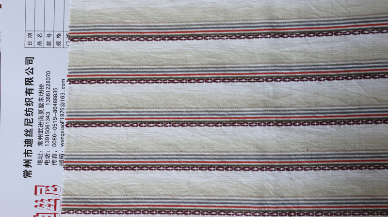 常州市迪絲尼紡織有限公司座落在中外馳名的紡織工業(yè)基地--江蘇常州,位于常州市武進高新區(qū)南夏墅朱明橋7號,交通、通信十分便利。 我公司擁有40臺劍桿織機和36臺進口噴氣織機,年產(chǎn)量500萬米以上,公司產(chǎn)品以色織布為主,包括:米通、青年布、牛津紡、氨綸彈力布,具體分為T/C類、T/R類、全棉類、棉麻類、竹節(jié)類、雙層布、色織條格布和提花格布等。我公司也生產(chǎn)印花布、燈芯絨等。產(chǎn)品暢銷世界各地,深受國內(nèi)、東南亞及西歐客商的青睞。 我公司秉著誠信、專業(yè)、品質(zhì)、服務的經(jīng)營理念,在競爭中合作,在合作中提高。定能成為您忠實的商業(yè)合作伙伴!