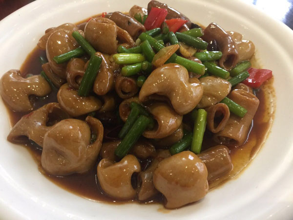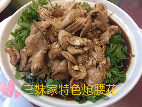 橫林有個地兒叫楊歧村,有句老話叫“上不靠橫林,下不靠洛社”,說的就是那里。 楊歧村過去幾十米就是無錫地界,今天小編推薦的土菜館「三妹農(nóng)家小吃」就在那里。 當小編一路七拐八拐,中午11點半到達那里時,門面雖然很簡陋,但店門口已然停了好多輛車。剛進入店門,就發(fā)現(xiàn)這家店人氣好旺,十幾桌基本都坐滿了。(所以說,人不可貌相,餐館也是如此) "三妹,三妹。⒌昀锟腿私袉韭暡唤^于耳,原來老板娘叫楊三妹啊。你們忙,我們先隨便看看。 過大廳到后堂就是冷菜間,里面有白切草雞、鹵豬干、拌馬蘭等十幾種土菜,尤其那草雞濃郁的香味,讓小編肚子叫得咕咕響。 往前是活貨區(qū),各種鮮魚活蝦一格一格區(qū)分養(yǎng)著,再里面是開放式廚房,每個客人都可以看到,選用的放心食材和調(diào)料。  吃貨老板娘,楊三妹,三妹,從小到大一直有個嗜好,就是愛美味,不光喜歡吃,還喜歡鉆研做。2010年,「三妹小吃」開張,因為獨具特色,在楊歧這個小村一炮而紅。要說楊三妹最拿手的菜是什么,當然是酒糟扣肉。 糟本來就是一種做米酒留下來后,用來吊燒酒的。但是我們常州人很聰明,把糟和肉放在一起,做成一道美味菜,叫酒糟扣肉。 楊三妹的酒糟扣肉之所以有名,得益于母親的悉心傳授。記憶里小辰光,她母親做的扣肉總比別人家的香!冈恪,釀完酒后留下的糟,會與炒熟的新糯米,拌和在一起,陳一年。「肉」,選擇本地養(yǎng)殖的良種豬,沒有臊味。 長大后,她把記憶里的美味延續(xù)了下來。精益求精的她,對扣肉的制作過程要求很嚴格。別人家制作都是把肉直接切大塊,排碗,熬槽,蒸爛。三妹說,這樣烹制,肉汁的鮮美會流失很多,口感減分不少。她的做法是精選新鮮豬五花,整大塊清蒸,保留肉汁的鮮美,之后再切塊紅燒,排碗,熬糟,澆蓋,再蒸。 三妹酒糟扣肉,出鍋后,色澤紅潤,味道鮮美。既有酒的香味,又有肉的鮮美,而且經(jīng)過蒸煮后,油脂都出來了,爽口不油膩。