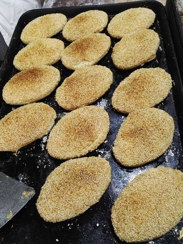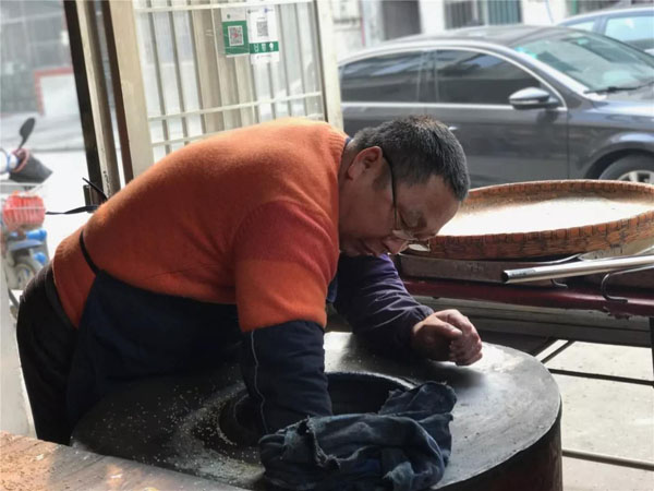 常州大麻糕已經(jīng)有150多年的歷史,常武各地的麻糕師傅、麻糕店數(shù)不勝數(shù),但今天小編要帶大家去的是一家隱藏在背街小巷里,至今仍保持著傳統(tǒng)手工制法的麻糕店。 沈正昌麻糕店位于遙觀鎮(zhèn)東街、國寧寺旁,雖然店門口連個招牌都沒有,卻不妨礙四面八方的食客慕名而來,大伙看中的正是這些純手工制作,原汁原味的大麻糕。如今的店主沈國平已經(jīng)是沈家第四代做麻糕的傳人了。 秉承著爺爺那輩傳下來的手藝,他們制作的麻糕塊大實誠,用料講究,口感酥軟,深受四周鄉(xiāng)鄰的歡迎。“我們還是老法,酥是生板油身擦的,餡里也是生板油摻糖,是真的綠色產(chǎn)品,沒有添加劑,沒有防腐劑,也不用甜蜜素,都是真家伙! 每天凌晨一兩點鐘,沈國平就要去采買當(dāng)天最新鮮的豬板油,回來清理干凈,和上面粉攪拌均勻,制成面團。麻糕的制作主要由沈國平妻子和兩個姊妹來完成。揉面、搓胚子、配油酥,按餡心、搟均勻,整個過程行云流水,連貫無比。 當(dāng)爐火燒得正旺,溫度能高達近300度,沈國平就上場了,赤手空拳,一撈一貼,一秒鐘的功夫,就把麻糕貼到了桶壁上。不過幾分鐘的功夫,麻糕就出爐了。經(jīng)過炭火爐子烤出來的,比一些電烤爐烤出的更香、更脆。