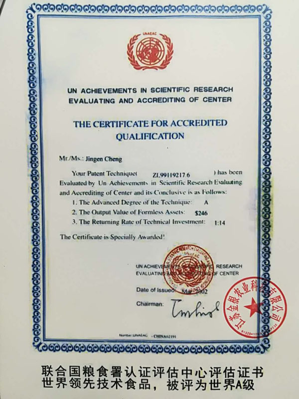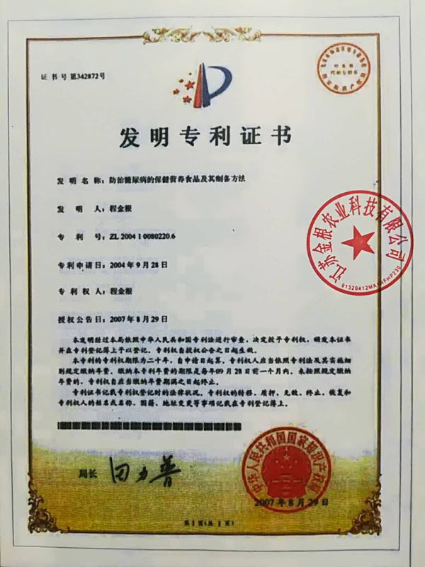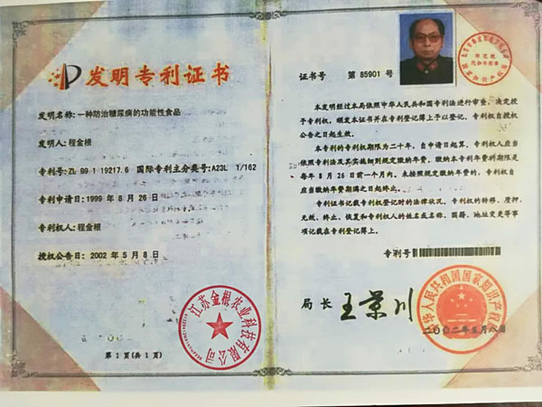 江蘇金根農(nóng)業(yè)科技有限公司是專業(yè)從事無糖食品、糖尿病、肥胖、和中老年人健康食品的研究、開發(fā)、銷售為一體的現(xiàn)代企業(yè)。 經(jīng)高級(jí)工程師程金根先生盡二十八年研發(fā),以五谷四豆為原料研制出一種特殊的營養(yǎng)食品。本產(chǎn)品富含人體所需的有機(jī)微量元素:鉻、硒、鋅、鎂、鋰等,幾十種氨基酸、膳食纖維及其它營養(yǎng)物質(zhì)。產(chǎn)品原料是按生態(tài)農(nóng)業(yè)有機(jī)的標(biāo)準(zhǔn)通過生物工程的種、培植方法,為谷糧增加了多種營養(yǎng)成份,按科學(xué)配方生產(chǎn)出“老山仁”系列產(chǎn)品。 本產(chǎn)品原料是在高寒、高濕、旱地等種植,要求施農(nóng)家肥,采用生物治蟲,因此是無公害的優(yōu)良品種。目前公司有四個(gè)種植基地,分別在江西、江蘇、陜西等地。 一種防治糖尿病功能性食品專利號(hào):ZL99119217.6。 “程金根”系列產(chǎn)品先后獲得二項(xiàng)發(fā)明專利,并經(jīng)聯(lián)合國科技成果評估論證為A級(jí)產(chǎn)品,屬世界領(lǐng)先技術(shù)。在韓國、美國、香港、德國分別榮獲新技術(shù)、新產(chǎn)品博覽會(huì)金獎(jiǎng)。 2006年經(jīng)國家農(nóng)業(yè)部、發(fā)展改革委員會(huì)、聯(lián)合國糧農(nóng)組織代表、中醫(yī)研究院、中國科學(xué)技術(shù)協(xié)會(huì)、中醫(yī)藥大學(xué)、農(nóng)業(yè)大學(xué)、農(nóng)學(xué)院、中國保健協(xié)會(huì)、糧油協(xié)會(huì)、食品研究所等十幾位專家對該專利產(chǎn)品做了評估論證,一致認(rèn)為該項(xiàng)技術(shù)先進(jìn)產(chǎn)品突出、食用安全,并給予很高的評價(jià)。 論證意見: 1、這項(xiàng)專利技術(shù)填補(bǔ)了國內(nèi)糖尿病特種功效食品的專用品種和栽培技術(shù)空白。 2、采用有機(jī)食品技術(shù),并以有機(jī)農(nóng)產(chǎn)品為原料加工特種營養(yǎng)食品,提高了產(chǎn)品的安全性。 3、用鉻、硒、鋅、鎂、鋰生物強(qiáng)化栽培技術(shù)已獲得發(fā)明專利,為國際先進(jìn)水平。 4、經(jīng)過10多年的應(yīng)用實(shí)踐,進(jìn)一步證明了通過飲食調(diào)理,可預(yù)防糖尿病,對已患糖尿病者有緩解和預(yù)防糖尿病綜合癥的功效。 “程金根”系列產(chǎn)品具有低脂肪、低熱量、高蛋白、富含各種微量元素(鉻、硒、鋅、鎂、鋰)、高膳食纖維、具有抗氧化、增加免疫力等特點(diǎn),經(jīng)常食用有利于膳食營養(yǎng)平衡,是糖尿病、肥胖和中老年人、亞健康群體最佳的健康食品。