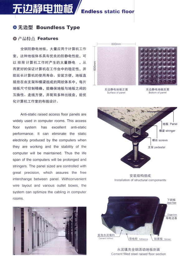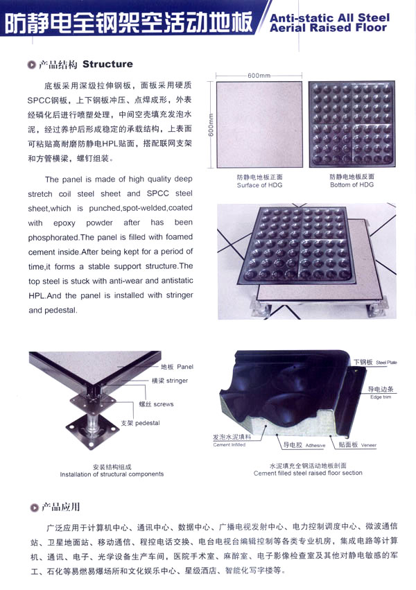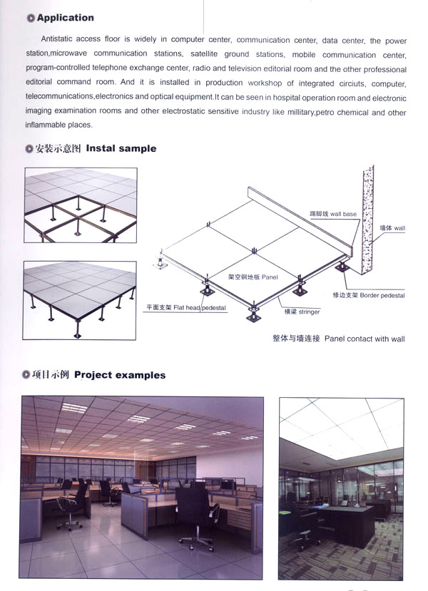 本公司生產(chǎn)產(chǎn)品廣泛應(yīng)用于電子計(jì)算機(jī)房、通訊機(jī)房、電視發(fā)射臺(tái)、軍事指揮站、各類實(shí)驗(yàn)室、辦公室及一些管線鋪設(shè)比較集中與要求防靜電場(chǎng)所,市場(chǎng)網(wǎng)絡(luò)縱橫江蘇、山東、福建、甘肅、上海、北京、安徽、浙江、河南等地。