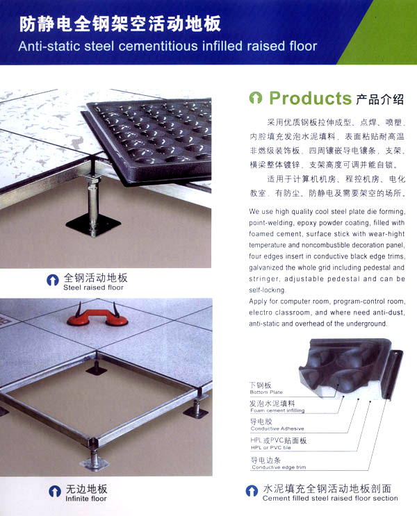 常州天馳活動(dòng)地板有限公司始創(chuàng)于2010年,原身是常州市武進(jìn)區(qū)橫林天馳機(jī)房地板廠(chǎng),地處橫林工業(yè)園區(qū),交通便捷。 公司主要生產(chǎn)和銷(xiāo)售各種機(jī)房地板,自創(chuàng)立以來(lái),以品質(zhì)第一,信譽(yù)第一,服務(wù)第一的理念堅(jiān)持做全國(guó)最優(yōu)質(zhì)量。 防靜電高架活動(dòng)地板是計(jì)算機(jī)行業(yè)發(fā)展起來(lái)的新型鋪地材料,隔離了潮氣,靜電灰塵。最重要的是解決了綜合布線(xiàn)問(wèn)題,無(wú)需預(yù)埋管線(xiàn),可隨時(shí)拆卸,搬移,保證了資訊設(shè)備完整的優(yōu)點(diǎn),適應(yīng)了智能化樓宇中信息自動(dòng)化技術(shù)對(duì)所處環(huán)境的特定要求,避免了廣大客戶(hù)的雙重投資,使現(xiàn)代化辦公程度更加高效,辦公場(chǎng)所更加舒適。 公司專(zhuān)業(yè)生產(chǎn)“天馳”系列活動(dòng)地板,符合國(guó)家安全要求,種類(lèi)完備多樣,其中防靜電瓷質(zhì)高架通路地板除具有普通瓷質(zhì)的裝飾和實(shí)用性外,其耐磨,防水,防火功能優(yōu)于其他同類(lèi)產(chǎn)品,深受客戶(hù)歡迎。 公司大力發(fā)展國(guó)內(nèi)外銷(xiāo)售業(yè)務(wù),多次中標(biāo)國(guó)內(nèi)重點(diǎn)裝飾工程,例:湖南電視臺(tái),寧波縣變電站,鞍山市120急救指揮中心等。 公司將一如既往開(kāi)發(fā)和制造一流的產(chǎn)品,愿與廣大有識(shí)之士合作發(fā)展,共創(chuàng)美好未來(lái)!