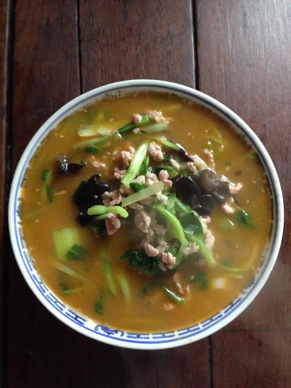 武進(jìn)區(qū)青城面館經(jīng)營面積280平方米左右,主要特色是現(xiàn)炒肉絲,素菜蓋澆面,面館創(chuàng)始人今年63歲的王蘭珍,她對(duì)美食有著高于常人的悟性。她開過饅頭店,開過小飯館,承包過食堂,燒菜、取料樣樣在行,吃過的人常常贊不絕口。 20世紀(jì)初,在跟德興面館的老師傅學(xué)了做面手藝后,王蘭珍萌生了開一家面館的想法,除了可以養(yǎng)家糊口,最重要的是想讓更多人嘗嘗自己的手藝。于是,她在自己的住處擺起了幾張桌椅,面館就算正式營業(yè)了。因?yàn)榧易∏喑菢颍跆m珍干脆取名“青城面館”。 “從早上5點(diǎn)多開始營業(yè),到下午1點(diǎn)多打烊,一天至少要賣掉300多碗面,用掉近160斤面粉!睘楹吻喑敲骛^的面條如此受歡迎,兒媳婦陸偉紅說秘訣在于湯頭和澆頭。湯頭分白湯和紅湯,白湯是由10斤豬骨頭熬制而成,湯色清澈而味道濃郁;紅湯以骨頭湯作底湯,加入茴香、甘草、草果等20多種中草藥,以及糖、醬油等調(diào)味品,鮮而不腥,散發(fā)出陣陣香味。 和一般面館事先燒制好澆頭,放在盆里供客人選擇不同,青城面館的澆頭都是一份份現(xiàn)炒的,特別講究食材的新鮮。就拿暢銷的肉絲蔬菜紅湯面來說,要先起猛火,把肉絲、木耳、蘑菇、青菜等食材放一起煸炒至香,然后澆在撈起的面條上。一碗面出來,現(xiàn)炒的澆頭與面條融合,味道香郁至極。 遙觀人的早晨,醒得有些早。對(duì)很多遙觀人來說,美好的一天是從青城面館開始的。那一碗碗現(xiàn)炒的蓋澆面,筋道爽滑、醬香味濃,溫存著他們的胃與記憶,帶來刻進(jìn)骨子里的家鄉(xiāng)味道。