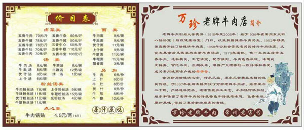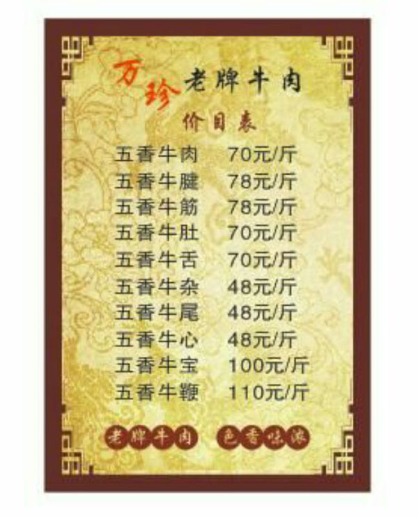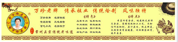 老牌牛肉創(chuàng)始人徐德洪始于1935年在常州東大街八仙浴室門口,以挑擔(dān)擺攤賣牛肉為生,1952年移至縣直街開設(shè)了徐德洪牛肉店。1958年公私合營改名為四時興牛肉店。文化大革命后又改名為立新牛肉店,1979年退休。他一生加工經(jīng)常五香牛肉,選料精良,工藝講究,配方獨到,牛肉色香味濃,味道純正鮮美,百吃不厭。長期以來,深得廣大顧客的一致好評和喜愛,成為常州城家喻戶曉的老字號。 徐萬珍乃徐德洪之女,傳承父業(yè),秉承父親精益求精的優(yōu)良傳統(tǒng),于1997年在同濟橋開設(shè)了萬珍老牌牛肉店,經(jīng)營至今二十載,嚴(yán)格選料把關(guān),遵循傳統(tǒng)加工工藝,不加工任何添加劑,繼承和保留了老牌牛肉的傳統(tǒng)特色和傳統(tǒng)老味道,色香味濃,原汁原味,得到了更多新老顧客的青睞。