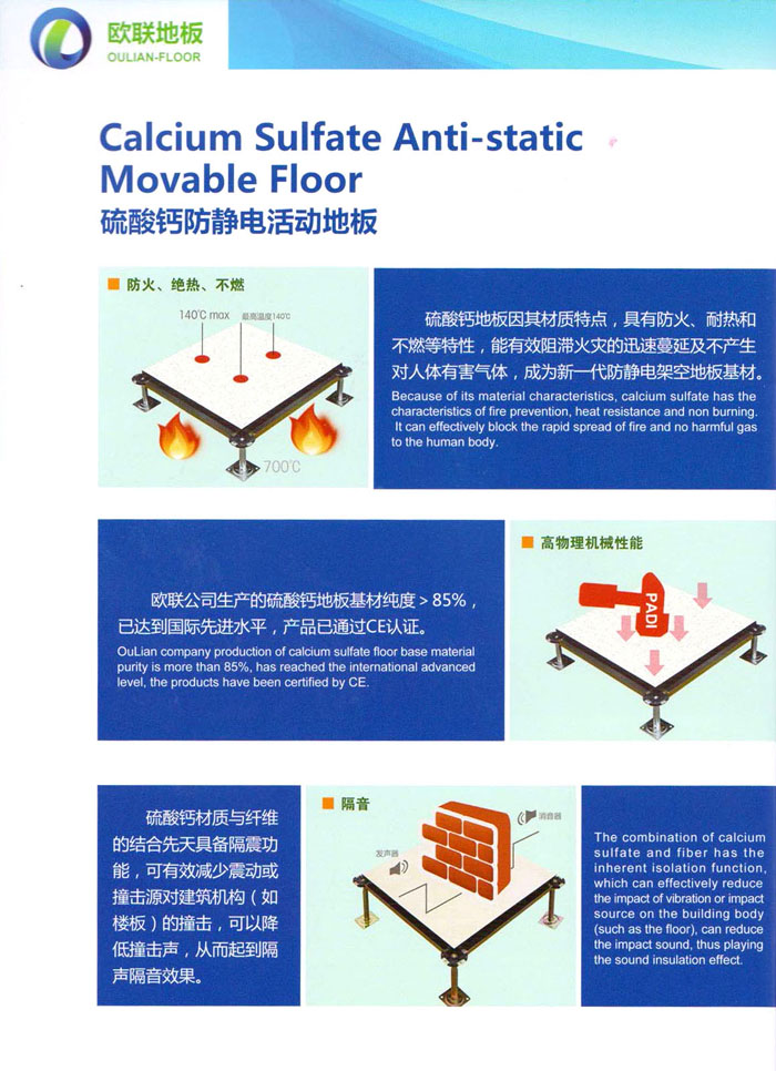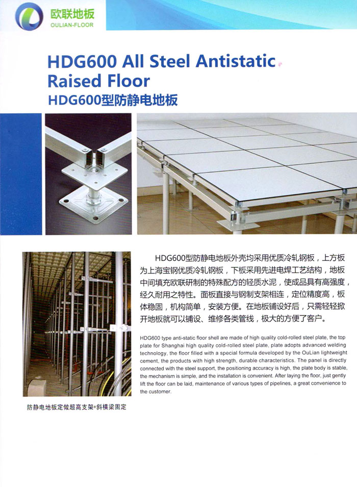 防靜電高架活動(dòng)地板、全鋼地板、陶瓷地板是計(jì)算機(jī)行業(yè)發(fā)展起來(lái)的新型鋪地材料,隔離了潮氣、靜電灰塵,最重要的是解決了綜合布線問(wèn)題,無(wú)需預(yù)埋管線,可隨時(shí)拆卸、搬移,保證了資訊設(shè)備完整的優(yōu)點(diǎn),適應(yīng)了智能化樓宇中信息自動(dòng)化技術(shù)對(duì)所處環(huán)境的特定要求,避免了廣大客戶的雙重投資,使現(xiàn)代化辦公程度更加高效,辦公場(chǎng)所更加舒適。 “歐聯(lián)”系列全鋼地板,符合國(guó)家安全要求,種類完備多樣,其中防靜電陶瓷地板、硫酸鈣地板等除具有普通瓷質(zhì)的裝飾和實(shí)用性外,其耐磨、防水、防火功能優(yōu)于其它同類產(chǎn)品,防靜電系列地板,能切合不同客戶的要求,其靈活的配置,深受客戶歡迎,不同材質(zhì)的地板結(jié)構(gòu)使設(shè)計(jì)師的設(shè)計(jì)空間比傳統(tǒng)的更加廣闊自由和善變。 公司大力發(fā)展國(guó)內(nèi)外銷售業(yè)務(wù),多次中標(biāo)國(guó)內(nèi)重點(diǎn)工程 ,例:哈爾濱醫(yī)科大學(xué)、山東大學(xué)、上海普通機(jī)場(chǎng)等。 公司將一如既往開(kāi)發(fā)和制造一流的產(chǎn)品,愿與廣大有識(shí)之士合作發(fā)展,共創(chuàng)美好未來(lái)。