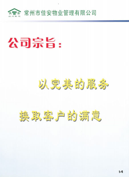 佳安物業(yè)管理有限公司位于常州市新北區(qū)薛家鎮(zhèn),2005年由薛家鎮(zhèn)黨委政府注冊成立,注冊資金50萬元,屬于三級資質(zhì)企業(yè)。成立之初,佳安物業(yè)作為政屬事業(yè)單位,主要負(fù)責(zé)管理薛家鎮(zhèn)順園新村安置小區(qū)。隨著薛家鎮(zhèn)經(jīng)濟(jì)和人口的發(fā)展,為主動適應(yīng)經(jīng)濟(jì)發(fā)展新常態(tài),全面深化物業(yè)綜合改革,打造具有薛家特色的物業(yè)公司,佳安物業(yè)由政府下屬的事業(yè)單位正式轉(zhuǎn)變?yōu)楠?dú)立運(yùn)營的企業(yè),并增資到1000萬元。 2017年6月,公司通過審核被評為“AAA”級信用企業(yè),同月,公司實(shí)施ISO9001質(zhì)量管理體系標(biāo)準(zhǔn),并于8月通過質(zhì)量體系認(rèn)證審核。2018年8月,公司通過了ISO14001環(huán)境管理體系、ohsas18001職業(yè)健康安全管理體系的認(rèn)證審核。 目前,公司主要承接小區(qū)物業(yè)服務(wù)及廠區(qū)外派保安服務(wù)、保潔服務(wù)等,F(xiàn)公司為薛家鎮(zhèn)順園一村至順園九村安置小區(qū)及奧林匹克花園、怡景名園2處商業(yè)小區(qū)提供物業(yè)服務(wù);為江南農(nóng)村商業(yè)銀行新北區(qū)所有支行、中車鐵馬、投資服務(wù)中心、華夏藝博園、薛家幼兒園、薛家小學(xué)及薛家中學(xué)等單位提供外派保安服務(wù);為薛家鎮(zhèn)中心廣場及松林別墅提供保安服務(wù);為華夏藝博園及投資服務(wù)中心提供保潔服務(wù)等。 在這十余年中,佳安物業(yè)與時(shí)俱進(jìn),銳意進(jìn)取,為地方建設(shè)發(fā)展注入動力,為居民和企業(yè)安全保駕護(hù)航,尤其是在實(shí)踐中,我們積極探索,正逐步摸索出一條適合薛家城鄉(xiāng)一體化建設(shè)的社區(qū)物業(yè)管理的新路。希望通過今天的分享,和大家一起探討我們在“管辦分離”等方面的實(shí)踐經(jīng)驗(yàn),并在此基礎(chǔ)上為薛家的可持續(xù)發(fā)展提供可借鑒、推廣的新型物業(yè)管理之路。