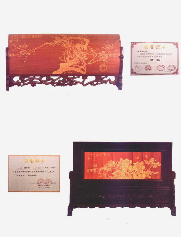 白堅(jiān)仁,1956年生于江蘇常州,國家級(jí)非物質(zhì)文化遺產(chǎn)、江蘇省級(jí)傳承人、江蘇省名人,高級(jí)工藝美術(shù)師,是留青竹刻泰斗白士風(fēng)之子。從小深受先父的熏陶和指點(diǎn),寒來署往、夜以繼日,不僅學(xué)到了先父厚樸豁達(dá)的品格,更深得先父竹刻藝術(shù)的真諦。除繼承刻有先父創(chuàng)立的橫臺(tái)屏、筆筒等作品外,更注重作品的創(chuàng)新。多年來,經(jīng)過艱辛的探索和反復(fù)的實(shí)踐,努力吸取姐妹藝術(shù),成功地采用了多片拼裝,配上紅木框架,制成大型的圖文并貌的作品,如帽籠、大插屏、鏡框掛件、四條屏、甚至中堂。在構(gòu)圖內(nèi)容、技法變化、裝幀形式等方面,都走出了創(chuàng)新之路,使所制作品適應(yīng)了現(xiàn)代人們的審美情趣和生活需求,實(shí)現(xiàn)了多年來要使留青竹刻與書畫作品同樣也能懸掛于廳堂之上的愿望。作品多次在國內(nèi)、國際展覽中獲獎(jiǎng),并獲得了留青竹刻史上的首位二項(xiàng)國家專利擁有者。