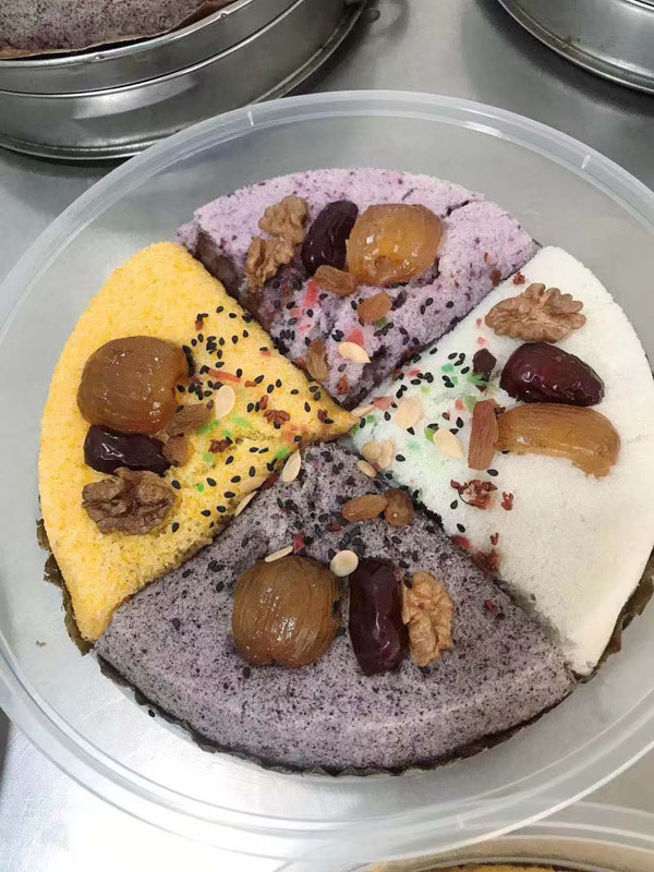 (重陽(yáng)糕)重陽(yáng)糕的由來(lái),九九重陽(yáng),九是陽(yáng)數(shù),也是陽(yáng)數(shù)中最大的數(shù),九月初九,兩九相重,為之重陽(yáng),古人有重陽(yáng)登高的習(xí)俗。高于糕同意,寓意人活九十九,生活步步高,秋景勝春光,夕陽(yáng)無(wú)限好。夕陽(yáng)紅成了老人對(duì)自己美好的祝愿和希望,所以從某種意義上來(lái)講它“祝壽糕”“長(zhǎng)壽糕”重陽(yáng)糕在常州地區(qū)是家喻戶曉的,下面小編帶你去一家至今保持傳統(tǒng)手工制作的鈺鋒糕點(diǎn)坊看一下吧。鈺鋒糕點(diǎn)坊位于常州市天寧區(qū)鄭陸鎮(zhèn)三皇廟范家莊,偏僻的小村莊,雖然有點(diǎn)偏僻,但是每到重陽(yáng)節(jié)到來(lái),每天還是有很多食客來(lái)訂購(gòu)和購(gòu)買店主孫煥做的多種口味的重陽(yáng)糕。要想做出松軟香糯的重陽(yáng)糕,原材料和糯米和梗米的配比也很重要,調(diào)整好比例開(kāi)始淘米,浸泡,釓粉,放入糖攪拌,篩粉,糕底部放上荷葉,中間的餡心都是孫煥自己熬制,口感,香糯松軟,店主孫煥為了吸引更多現(xiàn)代年輕人,她在粉里加入南瓜,紫薯,紅糖,血糯等,色彩搭配很出跳,吸引來(lái)了很多食客,孫煥2019年開(kāi)始自愿捐贈(zèng)重陽(yáng)糕給敬老院,她說(shuō)這樣的公益活動(dòng)自己很喜歡,雖然金額不大,缺表達(dá)了她的一份心意,并稱這樣的公益活動(dòng)她每年都會(huì)做。