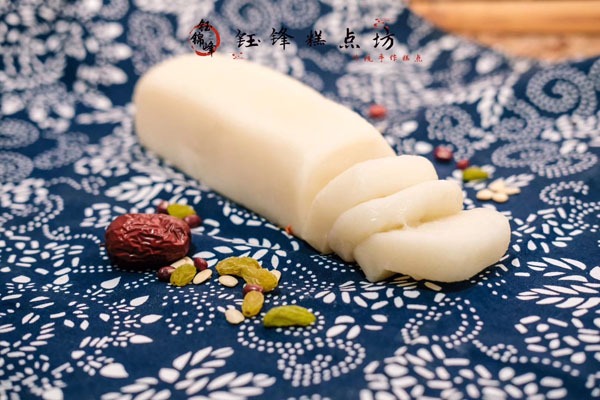 腳踏糕本名“年糕”,按常州周邊地區(qū)的風(fēng)俗習(xí)慣,在春季前夕,各家各戶都要蒸年糕,吃年糕!案狻敝C音“高”,過(guò)年吃年糕被賜予“年年高”,一年高一年,鋒吉祥之意,表達(dá)這人們對(duì)未來(lái)美好生活的憧憬和良好的祝愿。今天小編要帶大家的就是一家至今保持著傳統(tǒng)手工制作的鈺鋒糕點(diǎn)坊。   鈺鋒糕點(diǎn)坊位于常州鄭陸鎮(zhèn)三皇廟范家莊,一個(gè)比較偏僻的村莊,雖然這家作坊不大,但香糯絲滑,軟糯適中,韌勁十足的腳踏糕吸引了無(wú)數(shù)的食客。制作一條腳踏糕要從淘米,浸泡,碾粉,鋪粉,一層一層的鋪下去,需要無(wú)數(shù)道制作工序,這些都是店主孫煥公公老周,憑著幾十年的經(jīng)驗(yàn),加上店主孫煥從不馬虎的決心!   這“腳踏”也并非赤腳上陣,而是把蒸好的糕倒入早以準(zhǔn)備好的框子里,用布包裹好,上面再用薄膜包好,再蓋上布,再換上專門腳踏的布鞋,踩的時(shí)候要?jiǎng)蚍Q,左右腳要配合好,不然糕會(huì)高高低低,不平整,最后再拿蠟燭線拆成一條小長(zhǎng)條,再拿帶包裝好,如此又香又糯的腳踏糕就大功告成了。   店主孫煥為了讓更多的人認(rèn)識(shí)和了解常州腳踏糕的傳統(tǒng)文化和美食,她在傳統(tǒng)工藝中增加了適合現(xiàn)代文化的多種口味,她在糕里加入南瓜,紫薯,老紅糖,大麥汁,血糯米,核桃,葡萄干,紅棗等食材,做出五顏六色,純天然的口味,深受食客們的喜愛(ài),不管是送人還是自己吃都非常新穎。