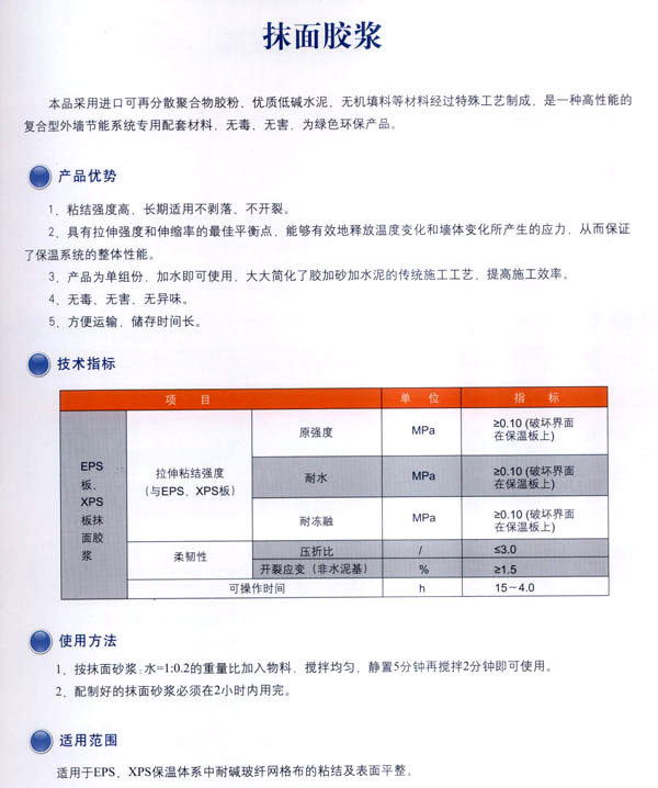 常州市?敌滦徒ú挠邢薰臼且匝兄崎_發(fā)、生產(chǎn)、銷售、施工、技術(shù)服務(wù)為一體的化學(xué)建筑材料的專業(yè)企業(yè),通過與歐洲著 名建筑材料公司和國內(nèi)權(quán)威科研機(jī)構(gòu)合作,并聘請國家級專家為技術(shù)顧問,開發(fā)出適合我國市場的?礒PS、XPS及聚苯顆粒外墻外保溫節(jié)能系統(tǒng)。 公司的生產(chǎn)線全部采用國內(nèi)先進(jìn)的電腦控制自動化設(shè)備,配備了專業(yè)的實驗中心,并且采用進(jìn)口的可再分散乳膠粉為基料,確保福康外墻外保溫節(jié)能系統(tǒng)具有性能優(yōu)異、安全可靠,綠色環(huán)保、適用性強(qiáng)的高品質(zhì)特點。 公司開發(fā)的\'?低鈮ν獗叵到y(tǒng)\'被列為江蘇省科技成果推廣項目。整個生產(chǎn)流程依照質(zhì)量體系的要求,實行嚴(yán)格的監(jiān)控和檢測,為生產(chǎn)優(yōu)質(zhì)產(chǎn)品提供保證。高品質(zhì)的?低鈮ν獗叵到y(tǒng),提供從熱工設(shè)計、產(chǎn)品開發(fā)、生產(chǎn)銷售及工程施工全程服務(wù)的一體化解決方案。 公司本著“綠色環(huán)保、節(jié)約能源、造福人類”的理念。用我們一流的產(chǎn)品和優(yōu)秀的服務(wù),打造出一個個節(jié)能康居示范工程,為人類營造出舒適健康的居住環(huán)境。我們愿為中國節(jié)能事業(yè)的發(fā)展積極努力,更上一層樓。 公司組建高效的生產(chǎn)經(jīng)營管理模式,設(shè)立專業(yè)技術(shù)服務(wù)機(jī)構(gòu)。配備售后的優(yōu)質(zhì)服務(wù)。實行原材料、運輸、安裝一條龍服務(wù)。經(jīng)本公司施工之后,貴公司可以直接批涂料、裝門窗、貼瓷磚,保證絕無任何質(zhì)量問題。
