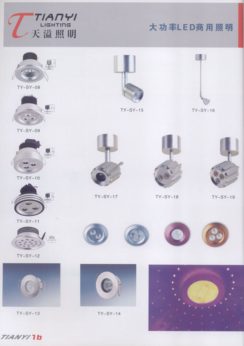 天溢照明是中國(guó)領(lǐng)先的專業(yè)從事LED廣告照明裝飾燈具設(shè)計(jì)、系統(tǒng)開發(fā)、燈具制造、工程服務(wù)一體的專業(yè)型公司,本公司產(chǎn)品已廣泛應(yīng)用于全國(guó)大多數(shù)城市夜景亮化景觀照明、酒店休閑娛樂夜場(chǎng)夢(mèng)幻燈光、戶內(nèi)外廣告宣傳、建筑及室內(nèi)照明以及家居裝飾等場(chǎng)合。