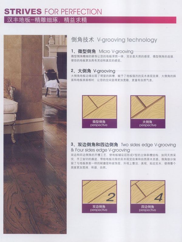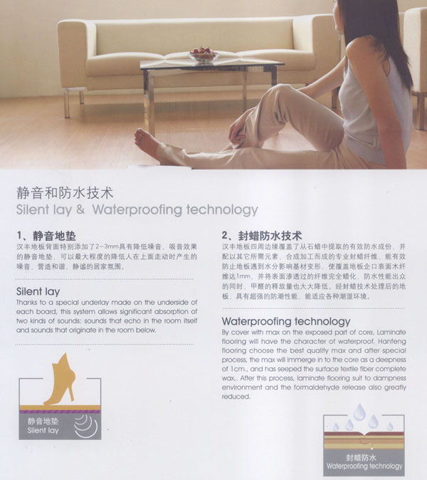 漢豐地板以奉獻(xiàn)生活中最完美的地板為發(fā)展目標(biāo),時(shí)尚流行的設(shè)計(jì)風(fēng)格和多樣化的產(chǎn)品類型,贏得了市場(chǎng)的廣泛贊譽(yù)和肯定。產(chǎn)品嚴(yán)格按照歐洲標(biāo)準(zhǔn)檢測(cè)強(qiáng)化木地板的各項(xiàng)性能指標(biāo).達(dá)到百分百的國(guó)際技術(shù)標(biāo)準(zhǔn),確保了每一塊地板都有著上乘品質(zhì),是綠色環(huán)保的好地板。并先后通過了Isc)9001國(guó)際質(zhì)量管理體系認(rèn)證,IS014001國(guó)際環(huán)境管理體系認(rèn)證.中國(guó)環(huán)境標(biāo)志產(chǎn)品認(rèn)證,深得用戶的一致好評(píng),是寫字樓、商場(chǎng)、大型超市、學(xué)校、建筑樓宇、娛樂場(chǎng)所、家用私宅等鋪裝的首選地板。