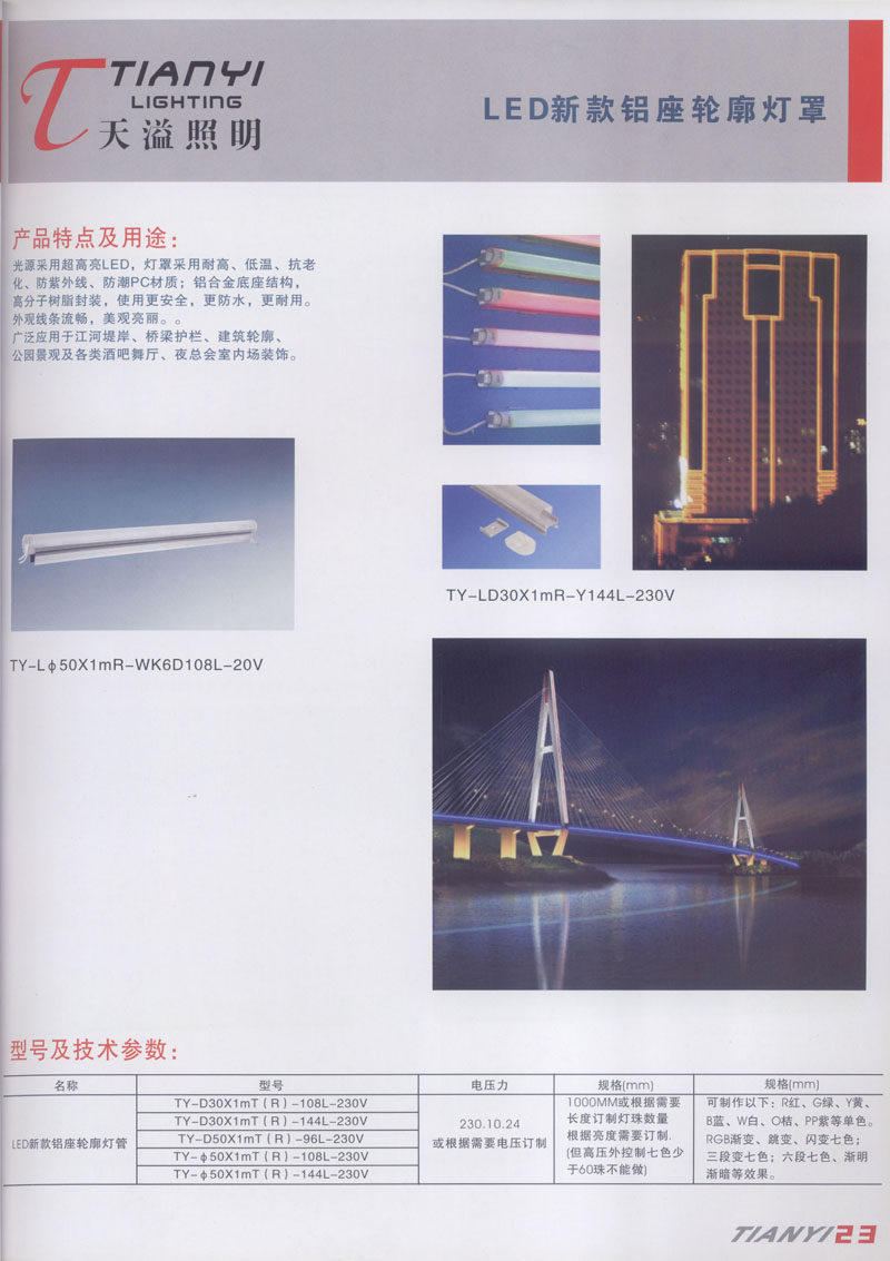 天溢照明是中國領先的專業(yè)從事LED廣告照明裝飾燈具設計、系統開發(fā)、燈具制造、工程服務一體的專業(yè)型公司,本公司產品已廣泛應用于全國大多數城市夜景亮化景觀照明、酒店休閑娛樂夜場夢幻燈光、戶內外廣告宣傳、建筑及室內照明以及家居裝飾等場合。 本公司產品涵蓋景觀裝飾照明、商用照明、居家照明、信息廣告顯示等領域,我們將性能可靠與適中價格的LED全系列產品帶到世界各個、角落。