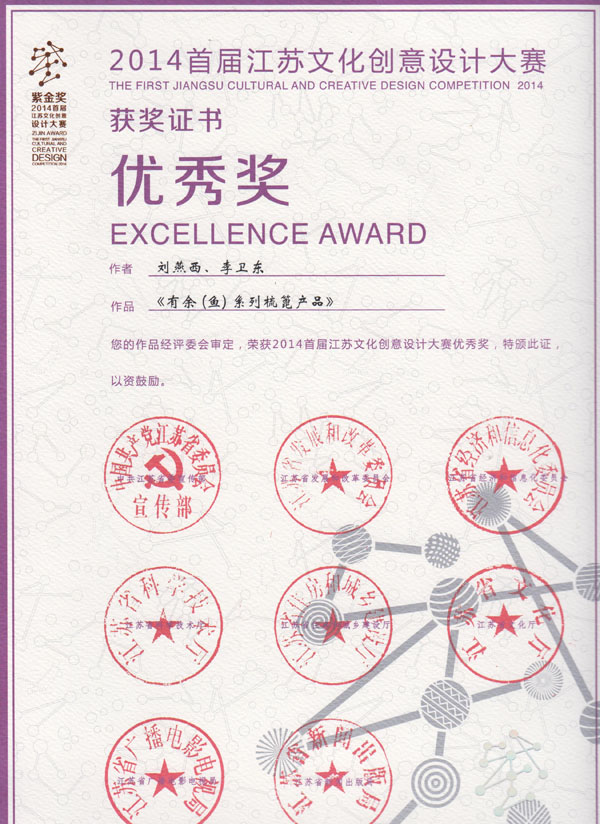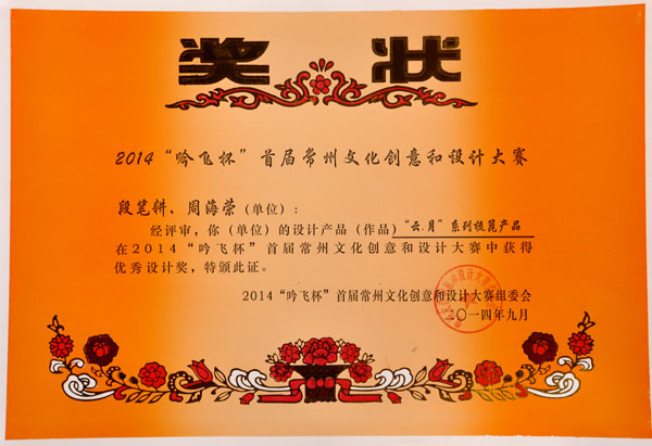 公司榮譽介紹: “2009年常州市旅游商品創(chuàng)新設計大賽”,“覽盡千荷”綠檀雕刻梳榮獲三等獎; “2011年常州市旅游商品創(chuàng)新設計大賽”,“彩印工藝梳-我們的年代(80)”榮獲二等獎。 “2011年中國包裝創(chuàng)意設計大賽“,虞美人彩印梳篦系列包裝獲得一等獎; “2011年中國包裝創(chuàng)意設計大賽”,虞美人筷子系列包裝獲得三等獎; “2011創(chuàng)意中國.第五屆設計藝術大獎賽”,虞美人系列包裝獲得三等獎; “2011首屆中國(無錫)國際文化藝術博覽會”,漆藝對梳《喜玫瑰》獲得“藝博杯“銅獎。 “第十三屆中國工藝美術大師作品暨國際藝術精品博覽會”, 漆藝梳《報喜鳥》榮獲2012“儒士儒家•百花杯”中國工藝美術精品獎優(yōu)秀獎 “第十三屆中國工藝美術大師作品暨國際藝術精品博覽會”, 虞美人《渾然天成》榮獲2012“儒士儒家•百花杯”中國工藝美術精品獎金獎 “2012江蘇省工藝美術精品大獎賽”,虞美人《S型梳》喜獲“藝博杯”銀獎 “第十四屆中國工藝美術大師作品暨國際藝術精品博覽會”, 虞美人工藝梳《新型十二星座梳》榮獲2013“國信•百花杯”中國工藝美術精品獎優(yōu)秀獎 “2013【藝博杯】江蘇省工藝美術精品大獎賽”,虞美人《萬事如意系列》喜獲“藝博杯”銀獎 “2013江蘇省工藝美術新人新作成果展作品大獎賽”,虞美人《壺(福)的藝術》喜獲“藝博杯”入圍獎 2013年度江蘇省“蘇商領袖峰會”,常州市卓尚飾品有限公司榮獲最具成長性企業(yè)獎 常州市卓尚飾品(虞美人)有限公司總經(jīng)理李衛(wèi)東榮獲“常州創(chuàng)意產業(yè)協(xié)會2013年底慈善獎榮譽” 常州市卓尚飾品有限公司榮獲薛家鎮(zhèn)人民政府2013年度“創(chuàng)新創(chuàng)優(yōu)”獎 常州市卓尚飾品有限公司榮獲薛家鎮(zhèn)人民政府2013年度“銷售業(yè)績”獎 2014中國(深圳)國際文化產業(yè)博覽交易會,劉燕西、李衛(wèi)東、段筆耕<十二星座系列>獲得“中國工藝美術文化創(chuàng)意獎”銀獎 2014中國(深圳)國際文化產業(yè)博覽交易會,徐德鴻、李衛(wèi)東、段筆耕《漆彩人生系列》獲得“中國工藝美術文化創(chuàng)意獎”銅獎 文化創(chuàng)意大獎賽“紫金獎” ,有余(魚)系列梳篦產品獲得了優(yōu)秀獎 2014吟飛杯首屆常州文化創(chuàng)意和設計大賽,虞美人有余(魚)系列梳篦產品榮獲優(yōu)秀設計獎 2014吟飛杯首屆常州文化創(chuàng)意和設計大賽,虞美人“云,月”系列梳篦產品榮獲優(yōu)秀設計獎 2014藝博杯江蘇省工藝美術精品大獎賽,虞美人《梳篦:酒醉的探戈》喜獲銀獎 2014“中國原創(chuàng)•百花杯”中國工藝美術精品大獎賽,虞美人《梳篦-江南風韻系列》喜獲銀獎 常州市卓尚飾品有限公司獲“2014年常州市電子商務協(xié)會2014年度優(yōu)秀會員單位” 2014“虞美人”成為常州市知名商標。