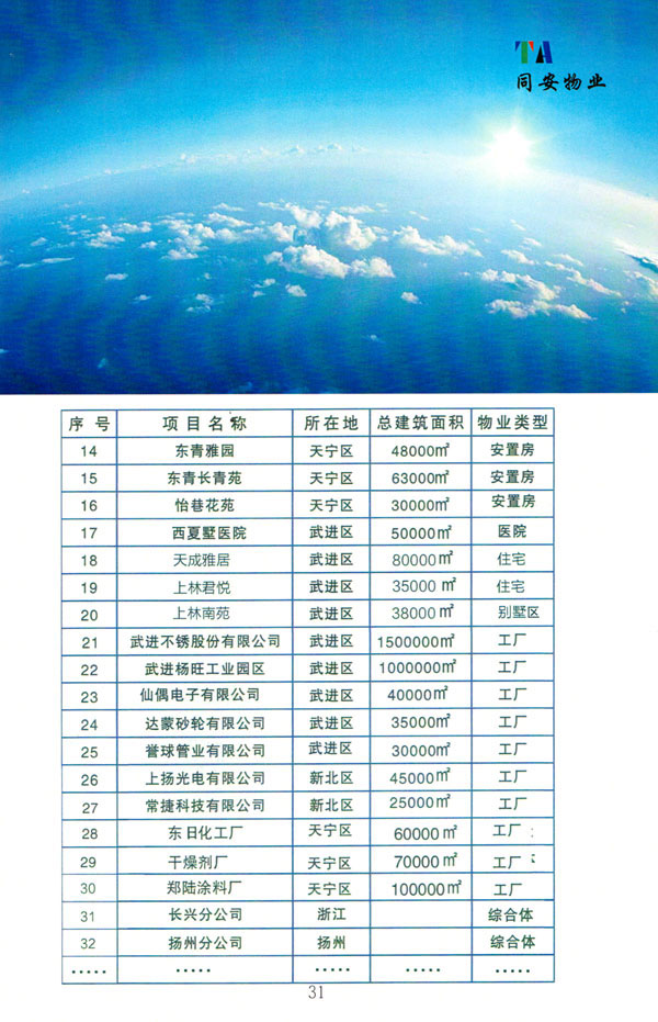 常州市同安物業(yè)管理有限公司注冊1999年,發(fā)展至今已有多年歷史,本公司坐落于美麗的龍城常州,秉承“融聚無限未來”的核心理念,融專業(yè)認才,匯優(yōu)質(zhì)資源以”專心,細心,耐心”的服務(wù)態(tài)度,為客戶打造“安心,順心,稱心”的服務(wù)感受。 公司始終以“打造中國最值得信賴和最值得尊重的物業(yè)管理服務(wù)集成商”為愿景自我鞭策,不斷前行。同安物業(yè)以客戶滿意為終極目標,不斷加強”崗位資格認證能力,人才招聘與職業(yè)化培訓能力,產(chǎn)品策劃與管理設(shè)計能力,品質(zhì)監(jiān)督與管控能力,技術(shù)更新與運營優(yōu)化力“五大專業(yè)能力的培養(yǎng)和提升,實現(xiàn)“精品化管理,專業(yè)化服務(wù)”。 公司發(fā)展至今,員工總數(shù)近千余人,大專以上學歷200多人,中高級技術(shù)人員160人,維修人員140人,物業(yè)管理師80名,公司接管面積達3100000多平方米,設(shè)涉及住宅小區(qū),別墅,大型游樂場,公園,醫(yī)院,廠區(qū),商業(yè)等。公司的工作管理逐步導(dǎo)入ISO9001質(zhì)量體系和ISO4001環(huán)境管理體系和GB/T28001職業(yè)健康安全管理體系,嚴格按照質(zhì)量體系的標準執(zhí)行。