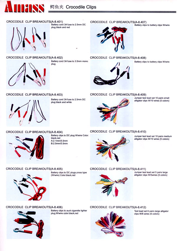 本公司專業(yè)生產(chǎn)各類香蕉插頭,香蕉插座,接線柱,電瓶夾,鱷魚夾,測試導線,測試筆等。產(chǎn)品分2mm/2.5mm/3mm/3.5mm/4mm五大系列,百余種款式, 各種香蕉插廣泛用于儀器、儀表、電力測試、教學、玩具,視聽設備、醫(yī)療儀器,保健產(chǎn)品等領(lǐng)域。公司技術(shù)力量雄厚,生產(chǎn)工藝先進,產(chǎn)品遠銷港、臺、歐美,并與飛利浦等國際品牌配套。公司本著精益求精的理念,歡迎新老客戶光臨。