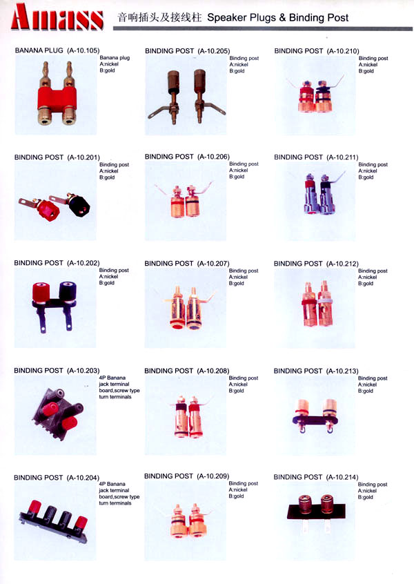 本公司專業(yè)生產(chǎn)各類香蕉插頭,香蕉插座,接線柱,電瓶夾,鱷魚夾,測(cè)試導(dǎo)線,測(cè)試筆等。產(chǎn)品分2mm/2.5mm/3mm/3.5mm/4mm五大系列,百余種款式, 各種香蕉插廣泛用于儀器、儀表、電力測(cè)試、教學(xué)、玩具,視聽設(shè)備、醫(yī)療儀器,保健產(chǎn)品等領(lǐng)域。公司技術(shù)力量雄厚,生產(chǎn)工藝先進(jìn),產(chǎn)品遠(yuǎn)銷港、臺(tái)、歐美,并與飛利浦等國(guó)際品牌配套。公司本著精益求精的理念,歡迎新老客戶光臨。